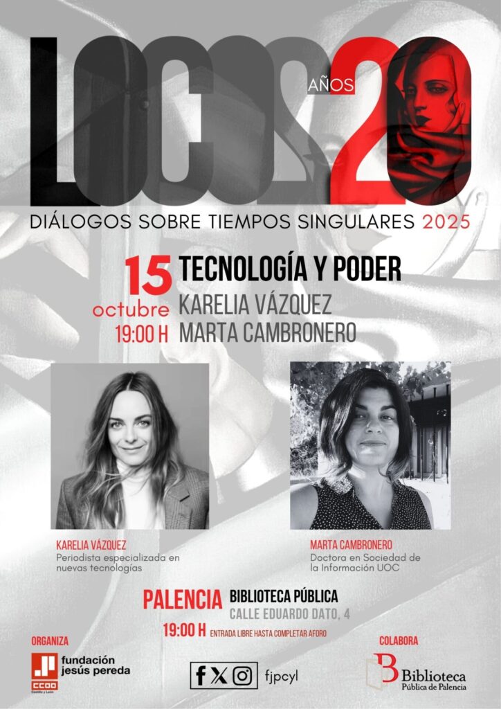 En segundo lugar, el 15 de octubre será el turno de ‘tecnología y poder’, donde se realizará un análisis de cómo la tecnología moldea nuestras vidas y cómo se vincula al ejercicio del poder económico y político. Serán protagonistas la periodista especializada en tecnología, colaboradora de El País Semanal e investigadora en Stanford, Karelia Vázquez, y la doctora en Sociedad de la Información, investigadora sobre discursos de odio y transformación de la esfera pública digital, Marta Cambronero.