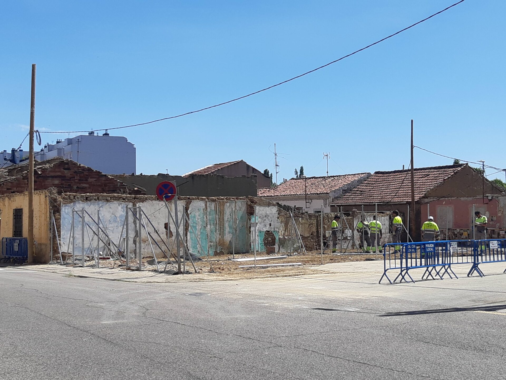 Los operarios de una contrata, una vez retirados los restos de las viviendas afectadas, vallan el terreno 25 días son los que ha estado cortada al tráfico la calle San Antonio de la capital, en su tramo final. 25 días...