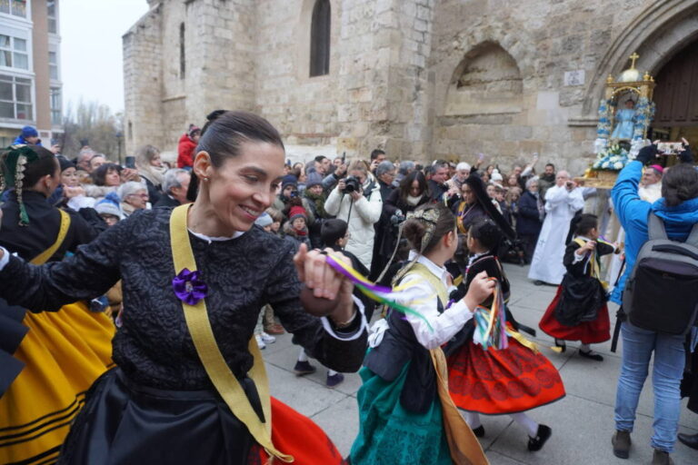 Cientos de personas acompañan, cantan y bailan a la talla del niño Jesús antes de la dulce pedrea Palencia, representada...