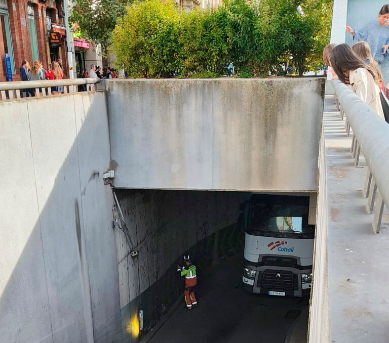 Efectivos de la Policía Local y el cuerpo de bomberos tardaron cerca de dos horas en desencajarlo Un camión de...