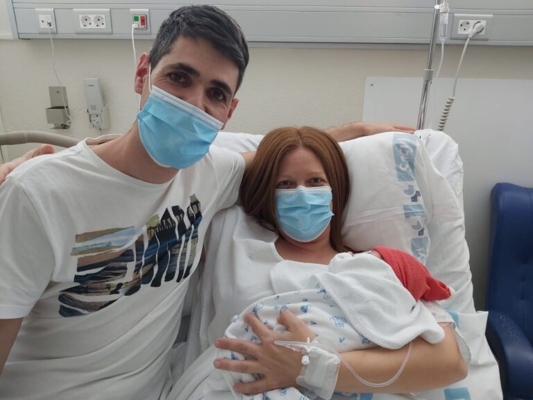 Alba Castrillejo Núñez (en la imagen con sus padres) última palentina nacida en 2020. Lo hizo a las 19 horas...