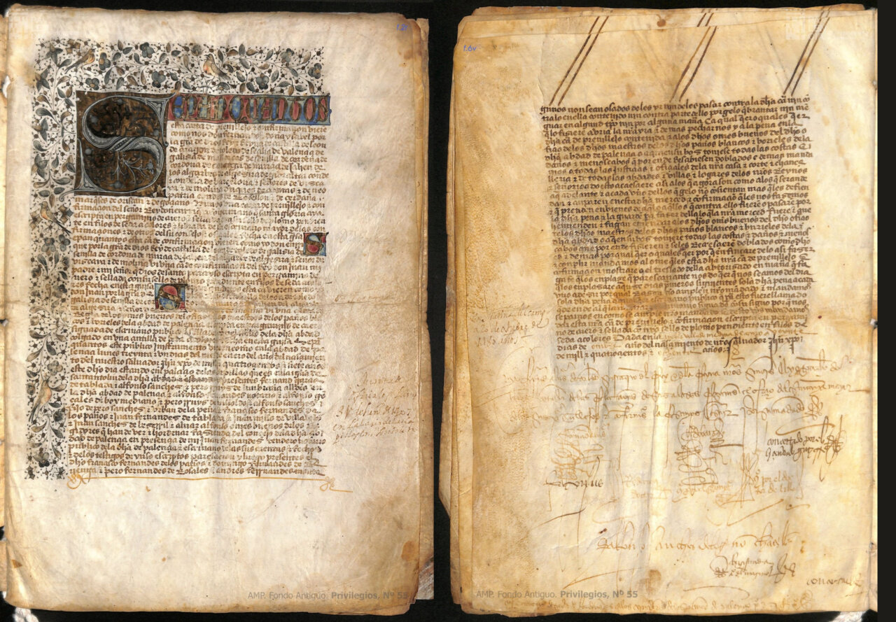 El archivero municipal, Agustín Sánchez, ha agradecido la colaboración de los compañeros del Archivo Histórico Provincial de Palencia por su custodia e informes sobre estado de conservación. Y destaca el valor de un documento de confirmación real correspondiente a una merced concedida por los Reyes «Todas las instituciones, en la medida de sus posibilidades, intentaban que, con cada nuevo reinado, sus documentos sus documentos claves fueran reconfirmados por el nuevo monarca, porque eso les dotaba, les introducía en el ordenamiento jurídico y podían ser utilizados para la defensa sus derechos e intereses en cualquier pleito de disputa», relata, destacando que, pese a ser un documento habitual, «se conservan pocas ordenanzas originales».