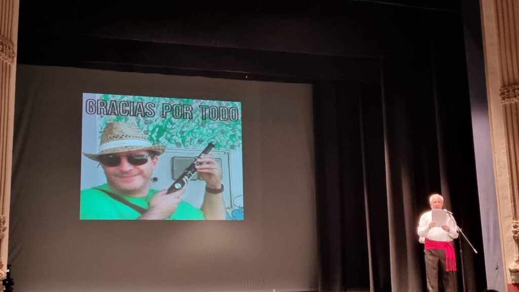 En el homenaje estuvieron presentes la mujer y el hijo de Carlos Pérez, ambos se mostraron enormemente agradecidos por este bonito homenaje y fue precisamente el hijo quien dirigió unas emocionantes palabras a todos los allí presentes en las que destacó la importancia del legado musical de su padre y su gran amor por la dulzaina y tras las cuales se fundió en un sentido abrazo con su madre.