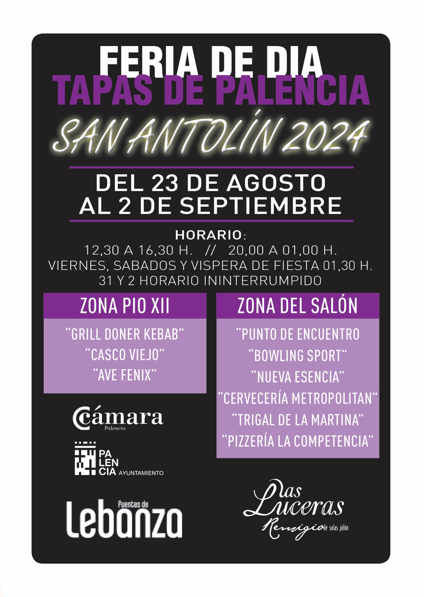 Palencia acogerá una nueva edición de la Feria de Día durante las Fiestas de San Antolín, que se celebrará del 23 de agosto al 2 de septiembre en dos ubicaciones principales, como viene siendo tradición: la zona de Pío XII y el Parque del Salón. La evento contará este año con la participación de nueve establecimientos hosteleros locales.