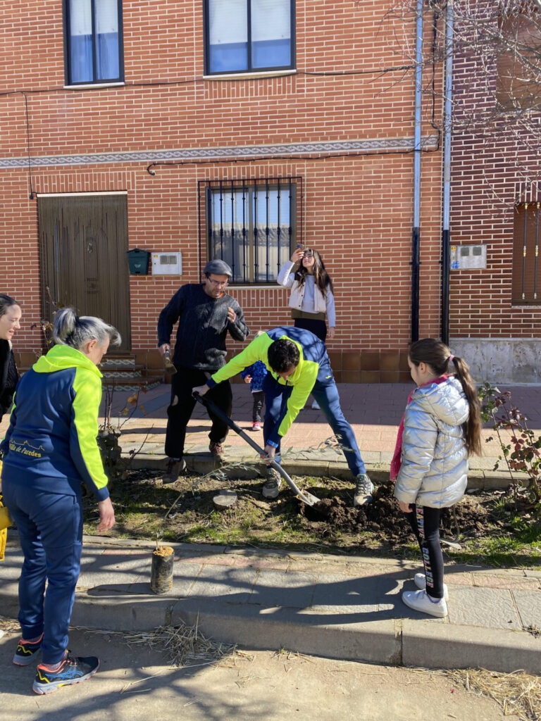 Una actividad en la que han participado, durante la primera jornada, todos los alumnos del CEIP Alonso Berruguete de la localidad paredeña, quienes plantaron un total de 40 árboles de olivos y almendros.