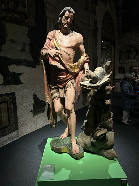 En el mismo capítulo de los evangelistas de Berruguete, se ha incluido a ‘San Juan Bautista’, de Manuel Álvarez, Jerónimo Vázquez y Antón Calvo, procedente de la iglesia de San Juan Bautista de Santoyo. Se trata de una soberbia talla realizada entre 1562 y 1583 en la que el cordero, atributo del santo, se encuentra sobre un libro abierto que está depositado sobre un tronco.
