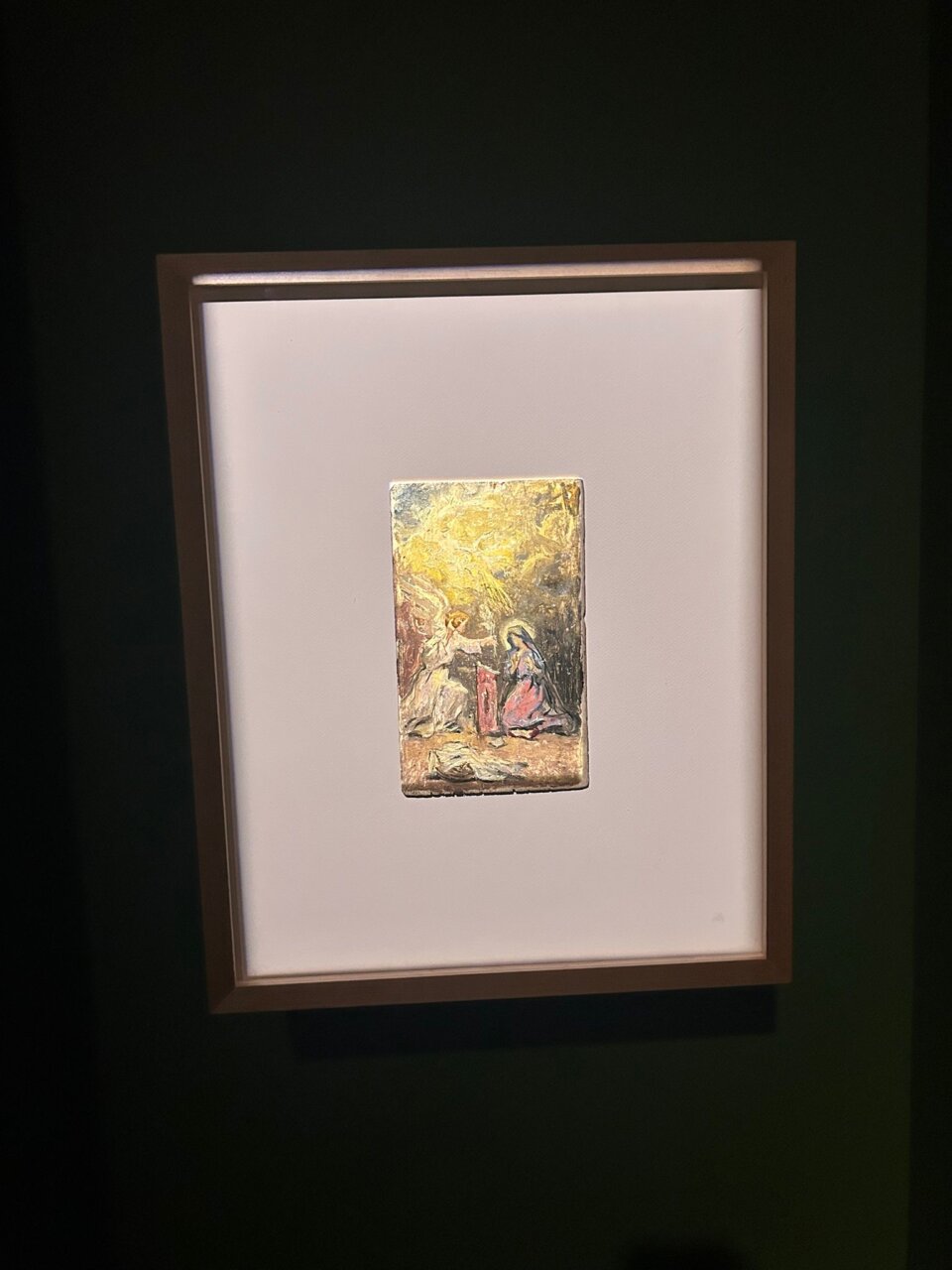 Además de las obras palentinas, el recorrido de la exposición depara grandes nombres del arte que han abordado de una u otra manera el tema de la exposición, EsperanZa. Son nombres, entre otros, como Gregorio Fernández –se muestra otro de sus impresionantes yacentes, el de la iglesia de San Miguel y San Julián de Valladolid–, Velázquez –la ‘Inmaculada de la Magdalena’, que viene de Sevilla–, Juan de Juni, Tomás de la Sierra, Diego de Siloé, Manuel Álvarez, Salzillo, Goya –los magníficos cuatro padres de la Iglesia latina, que se han trasladado desde la iglesia de San Juan Bautista de Remolinos Zaragoza–, El Greco –por partida doble–, Zurbarán –‘San Sebastián’, que procede de Lisboa– y Picasso –una curiosidad ver una coqueta ‘Anunciación’ pintada a los 15 años por este genial artista que fue con los años adalid del comunismo y de la revolución del arte contemporáneo–.