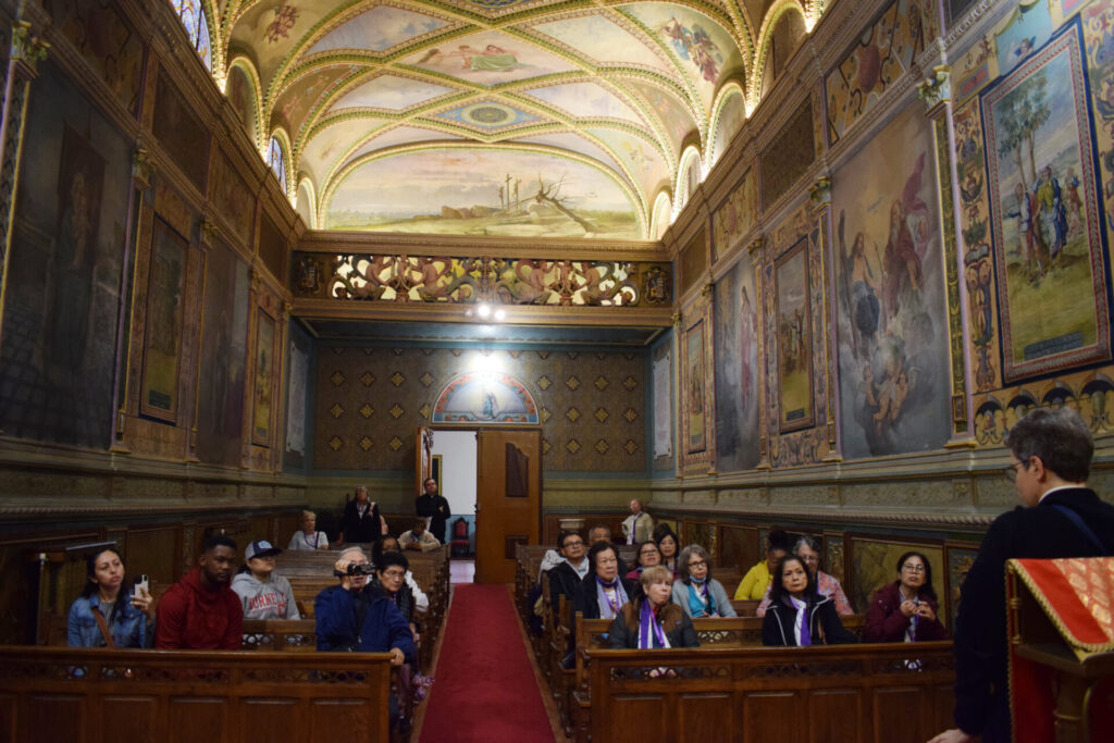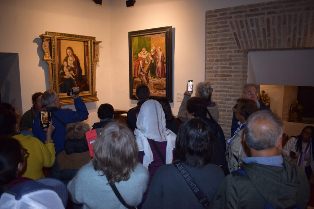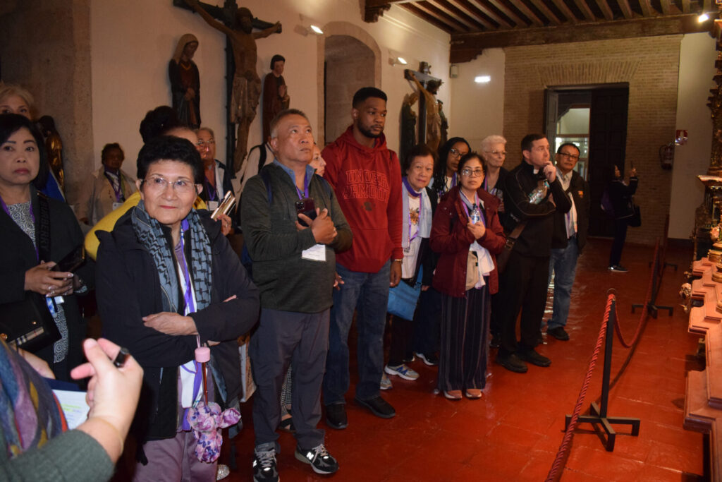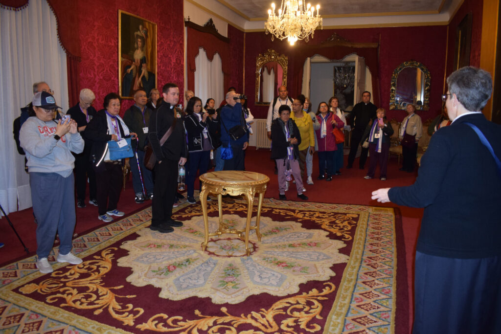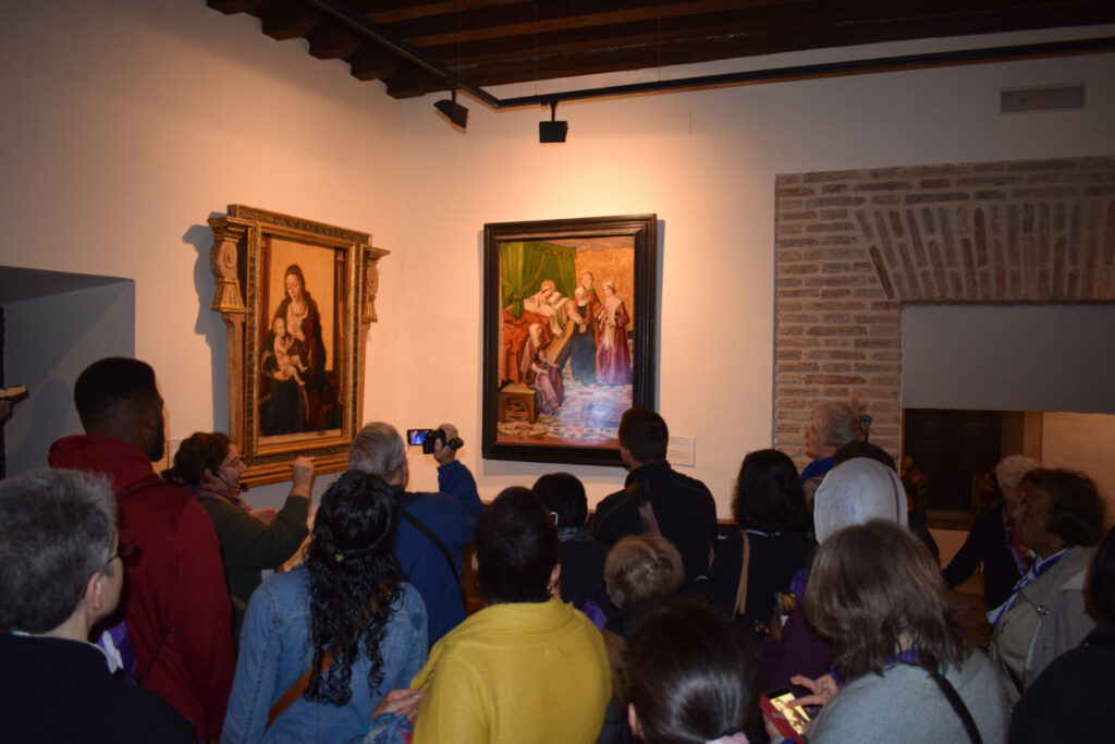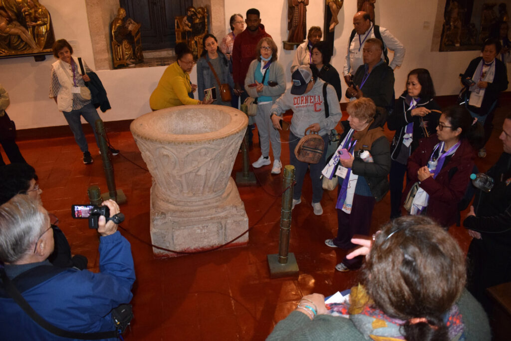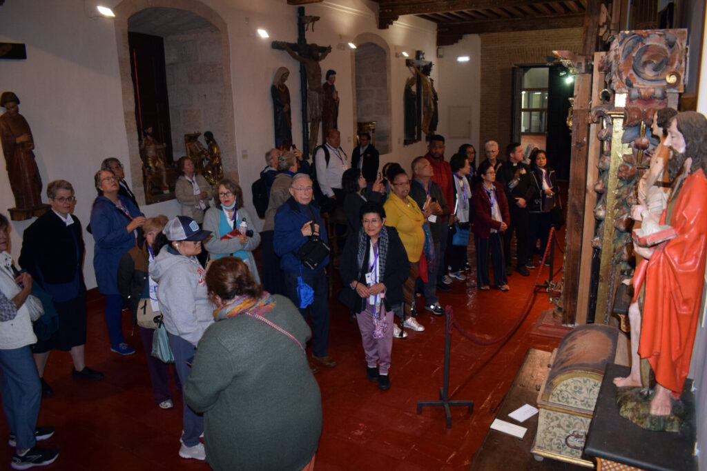 Divididos en dos grupos -habla inglesa y española- la jornada comenzó con la visita al Museo Diocesano y al Palacio Episcopal. En el Museo se prestó especial atención al retablo de Báscones de Valdivia, a la pila bautismal románica de Valcobero y a la obra de Pedro Berruguete. Los peregrinos también pudieron conocer la Capilla del Palacio Episcopal, el Salón del Nuncio y las habitaciones que usó San Manuel González en su época como obispo de Palencia.