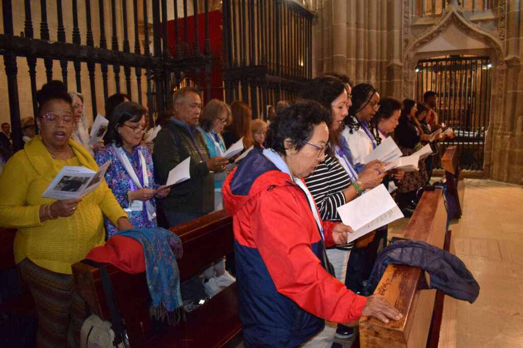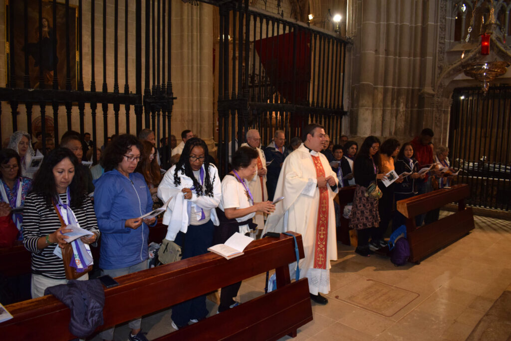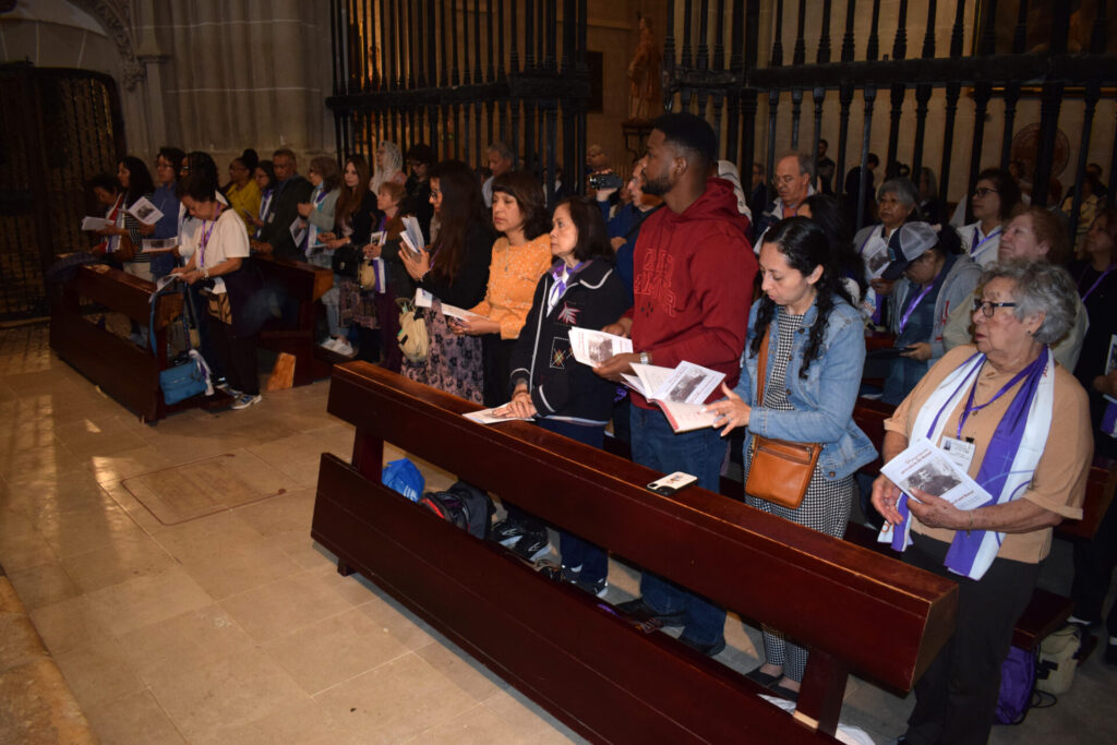 A las 12.00 horas los peregrinos se acercaron hasta la Catedral para celebrar la eucaristía bilingüe en la capilla del Sagrario de la Catedral, lugar donde descansan los restos de San Manuel González.