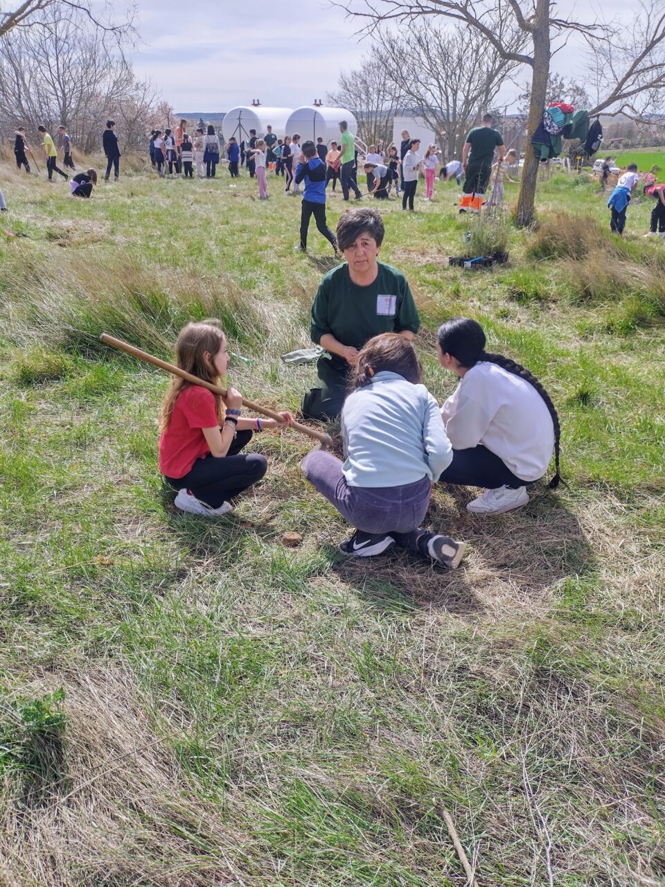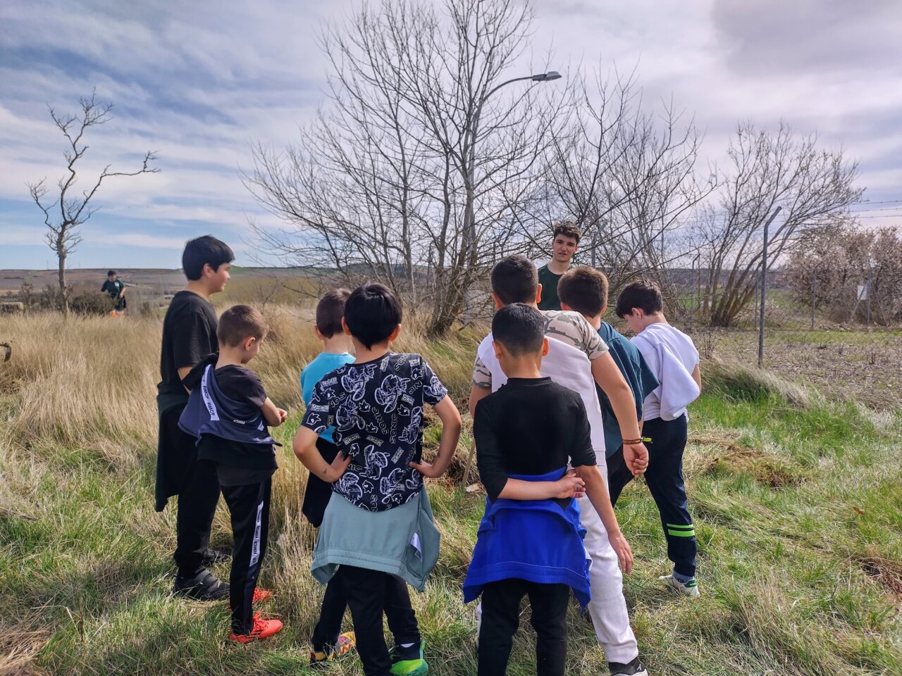 Grupo de niños aprendiendo sobre horticultura en Herrera de Pisuerga