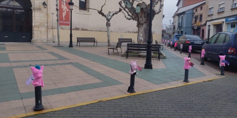 El Centro Histórico de Herrera de Pisuerga ha amanecido con otra lotería: la de los cerdos. Unos cerdos de ganchillo...