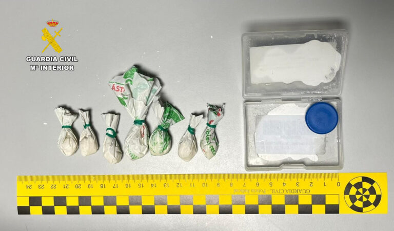 Se incautaron 7 bolsitas de SPEED ocultos en el bolso delantero de la sudadera del detenido La Guardia Civil de...