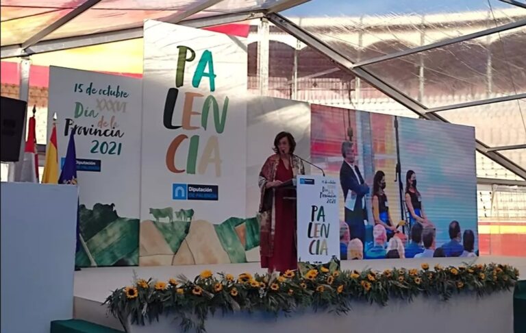 La presidenta de la Diputación de Palencia, Ángeles Armisén, durante su discurso en la celebración del XXXVI Día de la...