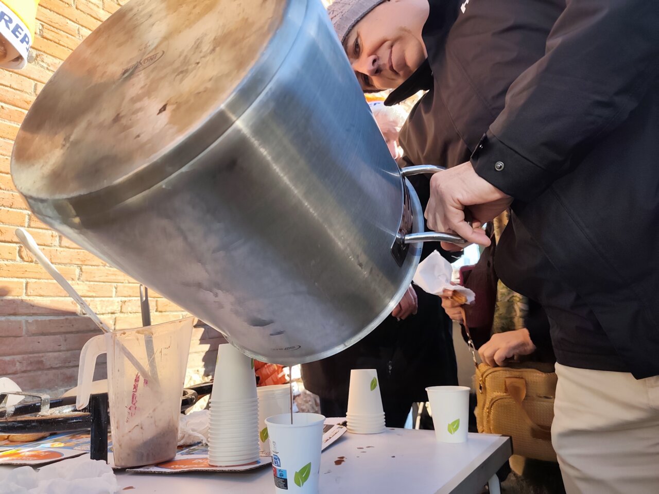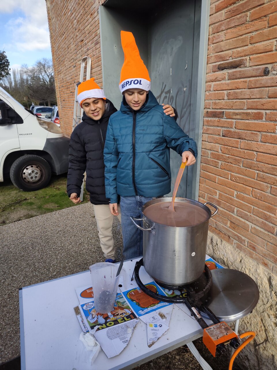 La previa a la comida navideña, acabó con una chocolatada de contraste con el agua del Canal. Calentita.