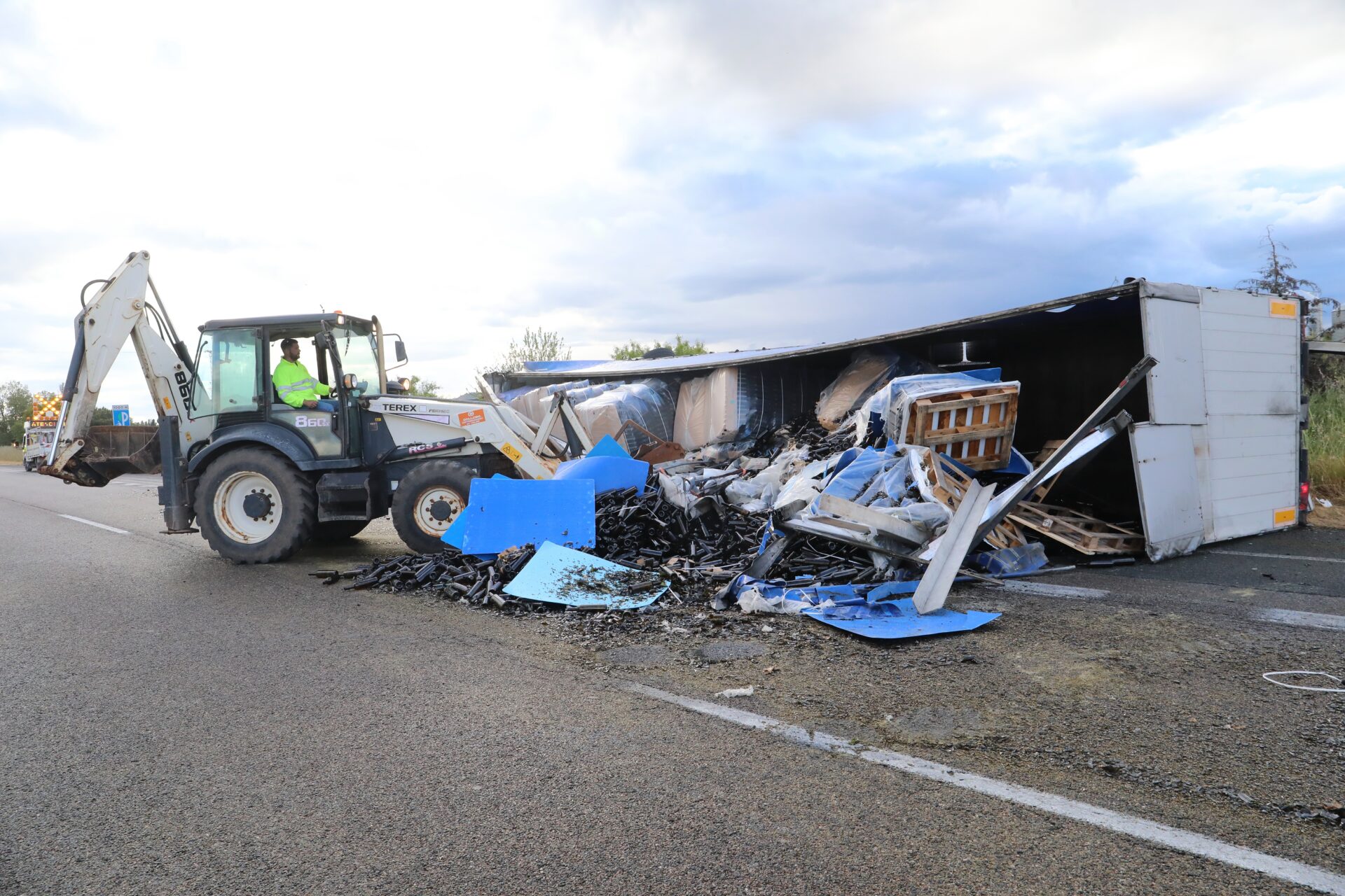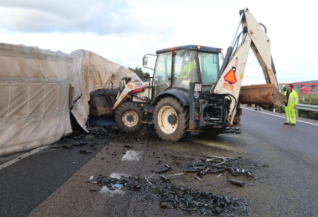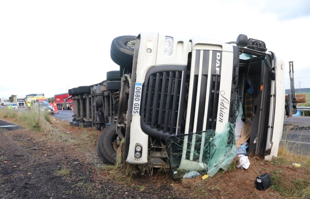 El tráfico fue cortado totalmente tras el vuelco de un camión