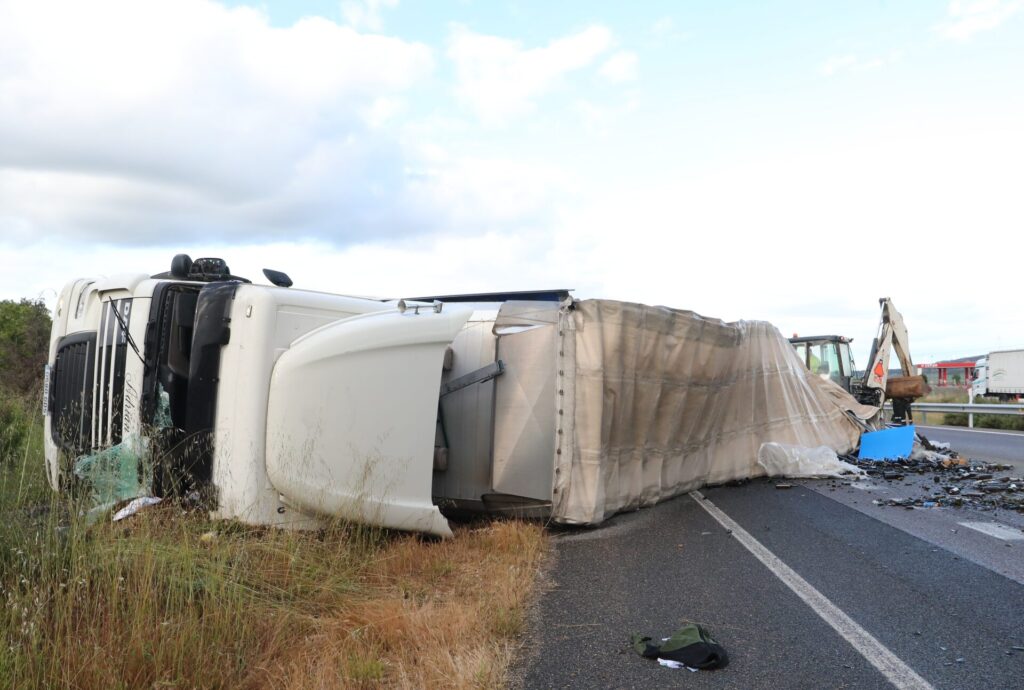 Ya se ha reabierto al tráfico un carril de la A-62 a la altura de la localidad palentina de Torquemada después de que el vuelco de un camión, sobre las 19 horas, provoca el corte total de la autovía A-62 entre los kilómetros 63,7 y 64,7, en sentido Valladolid.