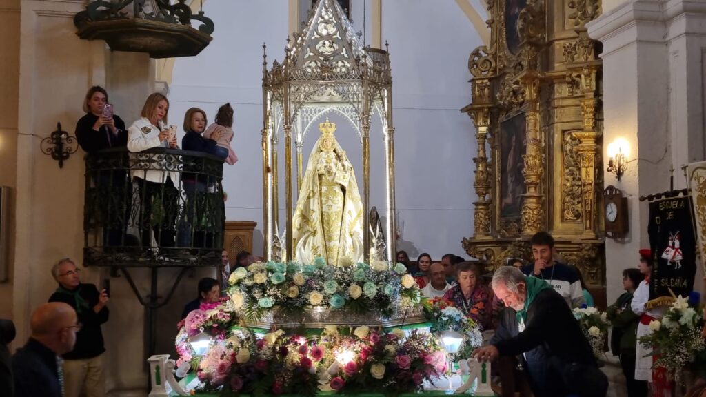 La villa saldañesa continúa celebrando sus fiestas en honor a la Virgen del Valle. Unas fiestas que tal y como declaraba unos días atrás el alcalde de la localidad, Adolfo Palacios, giran en torno a la Santa, y que dieron comienzo el pasado día 5 con la bajada de la Virgen al santuario a Saldaña para realizar la Novena, acompañada por los cofrades y danzantes y los niños que han realizado la Primera Comunión.