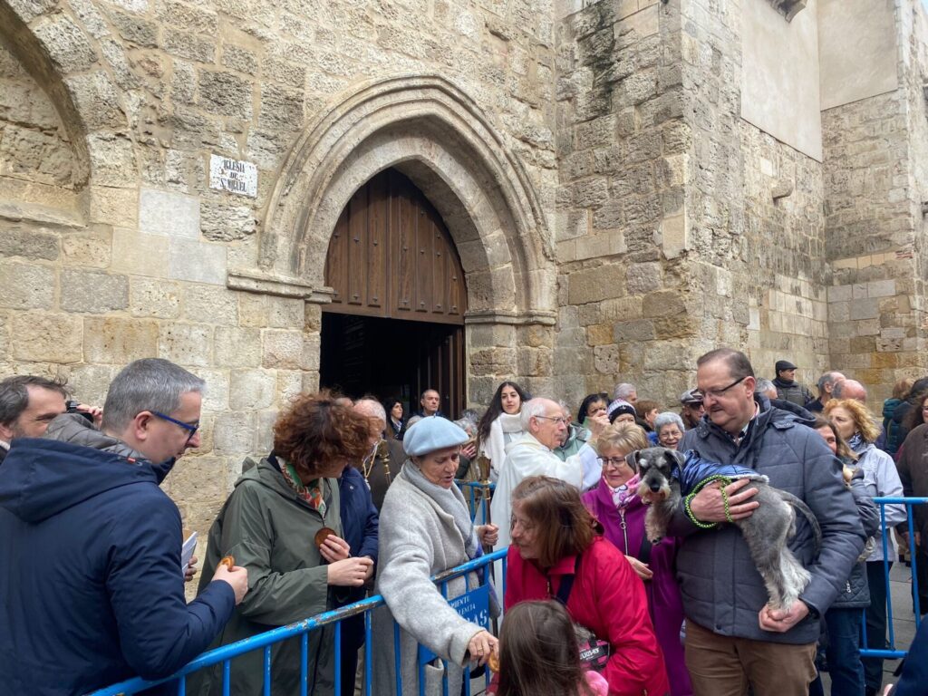 Fieles a la tradición, como cada 17 de enero, los palentinos han acudido a las puertas de la Iglesia de San Miguel con sus mascotas para que recibieran la bendición por la festividad de San Antón.