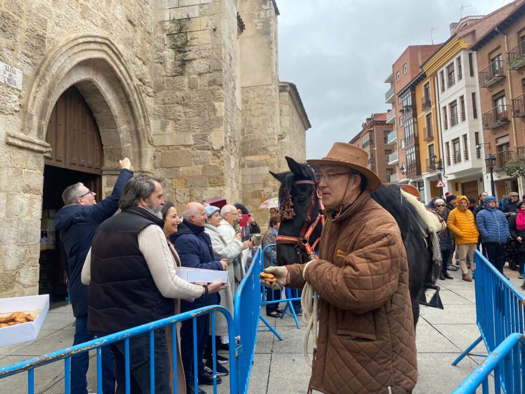 Las autoridades han repartido panecillo de San Antón a aquellos que han acudido a la iglesia de San Miguel para recibir la bendición a sus mascotas
