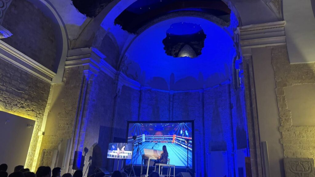La bóveda derruida, tan solo sugerida por algunos arcos en pie, hacía dirigir la mirada hacia la inmensidad del universo. Así que el proyecto arquitectónico, tal como lo describen sus autores, se convirtió en un juego de ilusionismo. “Le pusimos un techo y, después, lo hicimos desaparecer”, explicaba Juan.