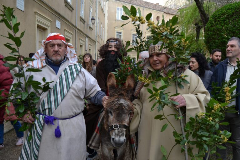 La procesión es encabezada por un vecino a lomos de un borrico El Domingo de Ramos, tras la bendición de...