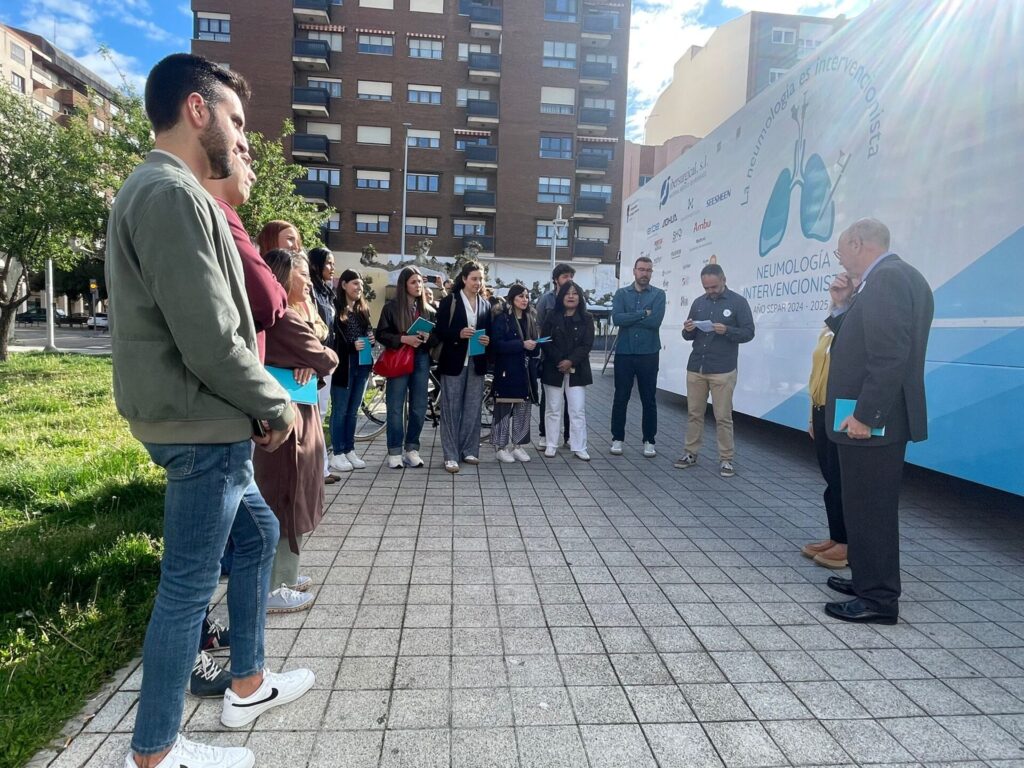 Ayer jueves y hoy viernes se ha detenido frente al Centro Cultural Antigua Cárcel (Lecrác), de Palencia, donde se celebra estos días el XLIV Congreso SOCALPAR, de la Sociedad Castellanoleonesa y Cántabra de Patología Respiratoria. Allí han estado presentes Enrique Cases, coordinador del Año SEPAR y jefe de la Unidad de Neumología Intervencionista del Hospital La Fe de Valencia; y Ana María Andrés Porras, presidenta del Congreso SOCALPAR., entre otros especialistas.