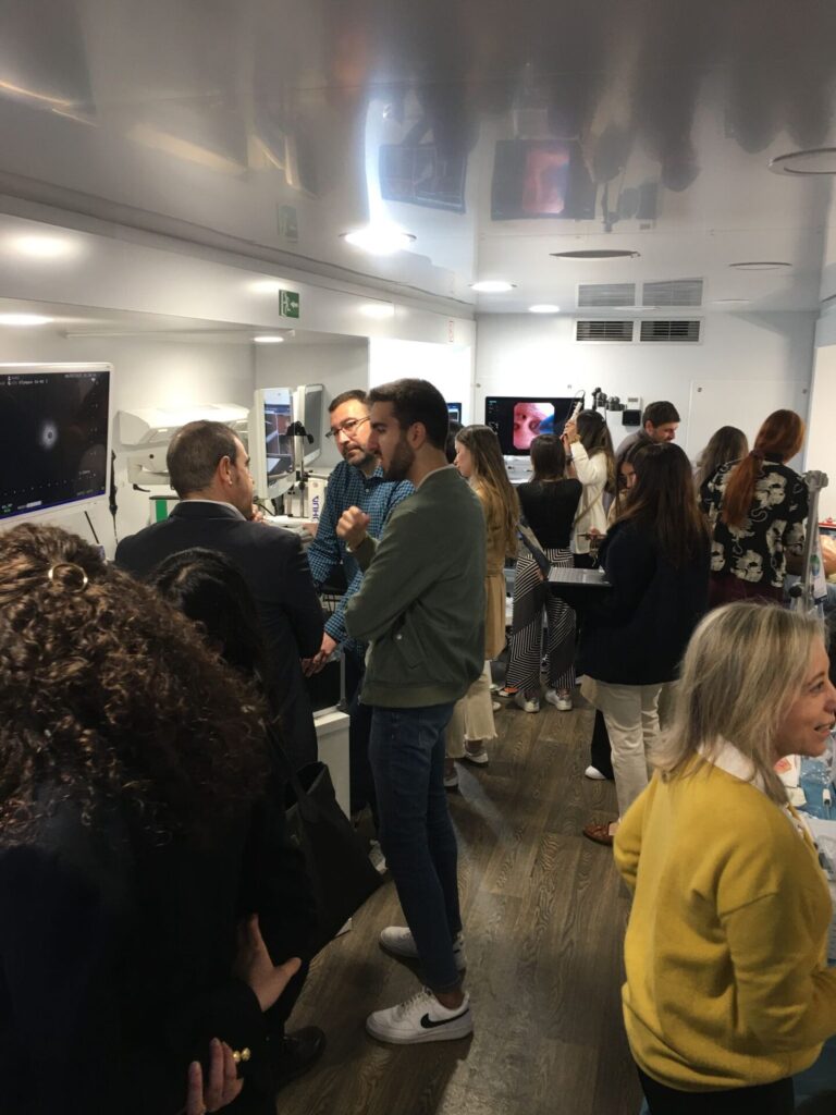 La Sociedad Española de Neumología y Cirugía Torácica ha adaptado un camión para recrear una unidad con tecnología avanzada y lo ha instalado ayer jueves y hoy viernes frente al centro Lecrác