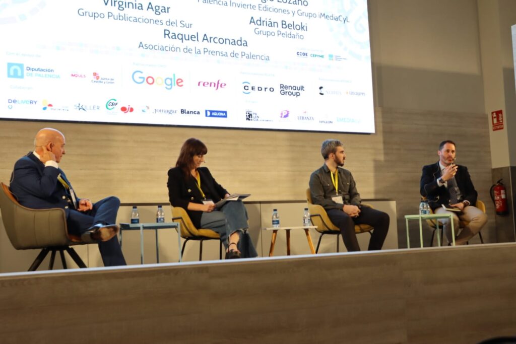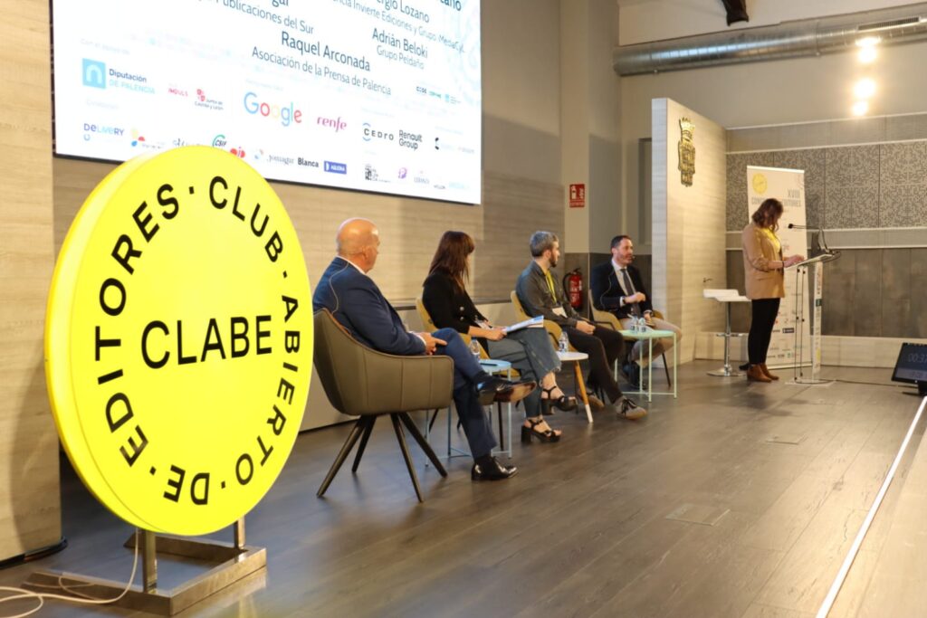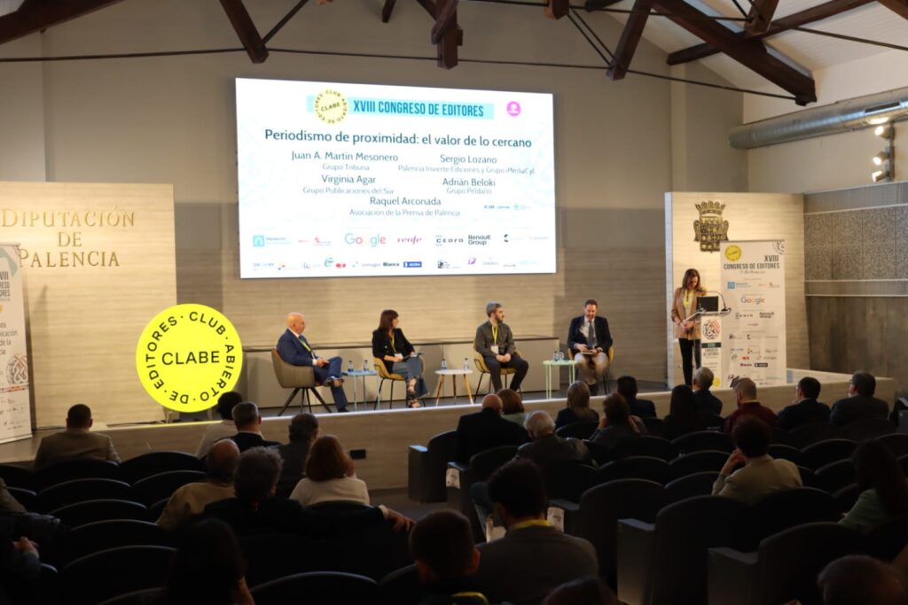 Periodismo de proximidad: el valor de lo cercano era el título de la cuarta y última charla de este primer día de Congreso de CLABE en Palencia con una mesa conformada por Juan A. Martín Mesonero, presidente CEO Grupo Tribuna; Virginia Agar. Head of Communications & Digital Marketing. Grupo Publicaciones del Sur; Adrián Beloki. Director de Contenidos. Grupo Peldaño y el propio Lozano, moderada por Raquel Arconada, presidenta de la Asociación de la Prensa de Palencia.