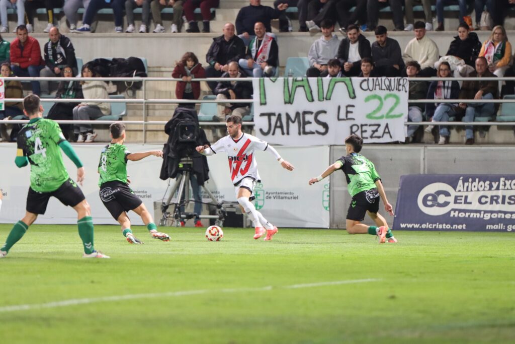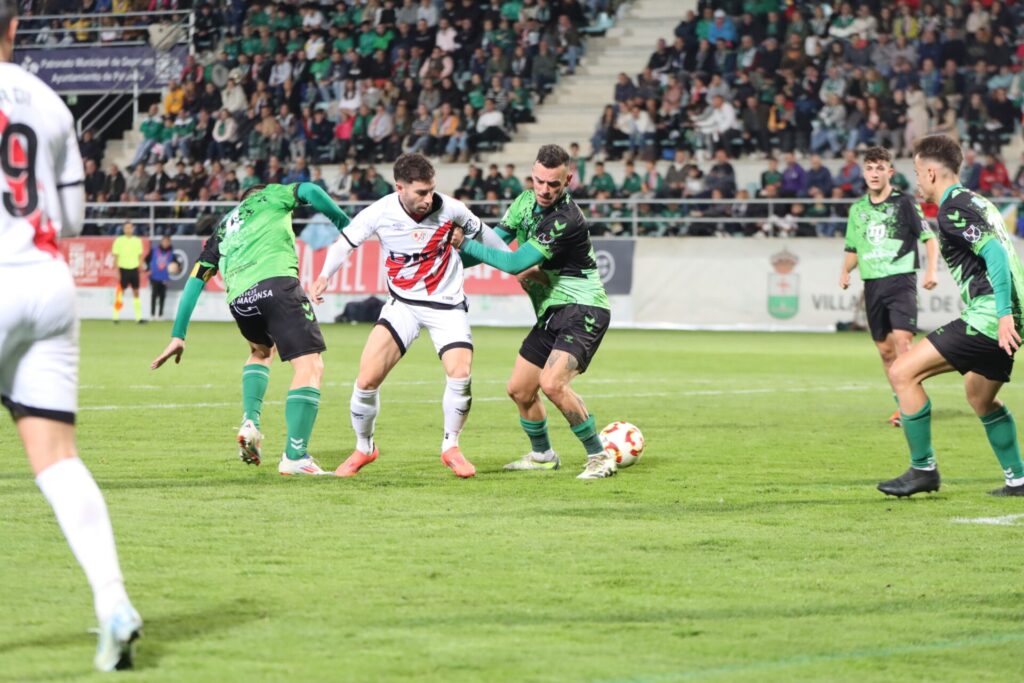 30′ LA HA TENIDO EL VILLA. LA HA TENIDO JAIME GÓMEZ SOLO CONTRA EL PORTERO TRAS UN RECHACE, PERO FINALMENTE SE ESTRELLÓ EN EL GUARDAMETA RAYISTA. Gran robo previo de balón de Miguel.