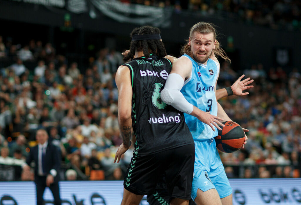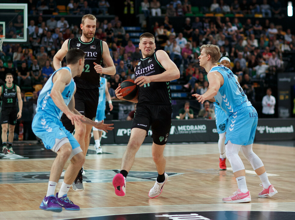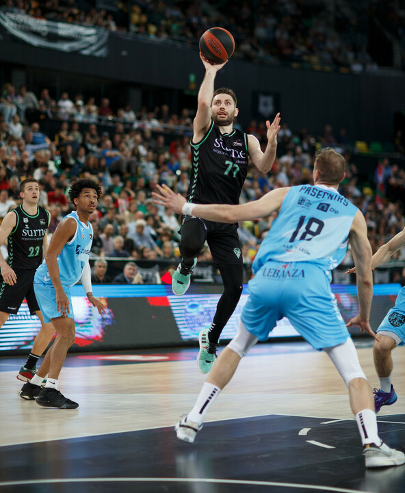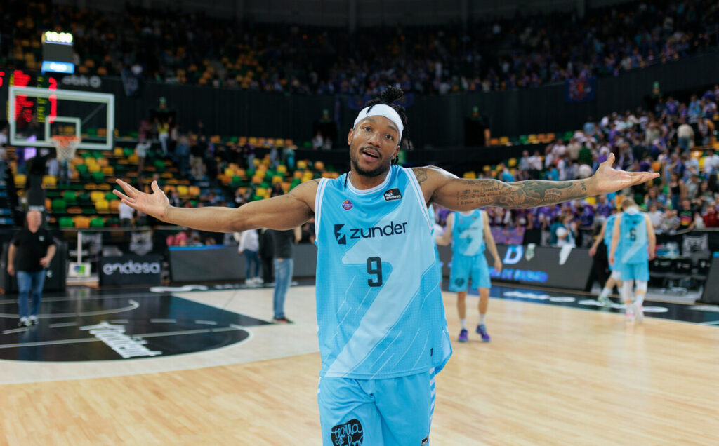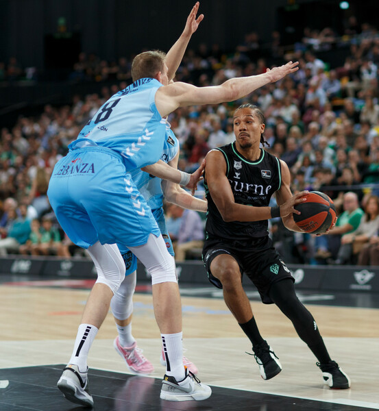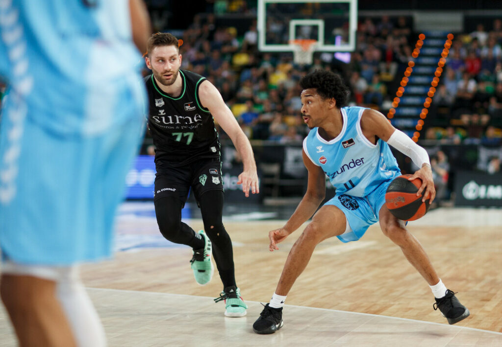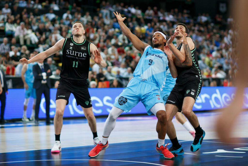 Introdujo a Frankamp a los mandos y a Hands como su escota, buscando de nuevo a Pasecniks por dentro. Y la ventaja volvió a crecer a 12 puntos en menos de dos minutos con el dominio del rebote tanto defensivo como ofensivo y el acierto desde el tiro de tres que cotizaba entonces en un 63% para los del Zunder. El Bilbao Basket llegó al descanso con apenas un 10%. 1 de 10 desde los 6,75.
