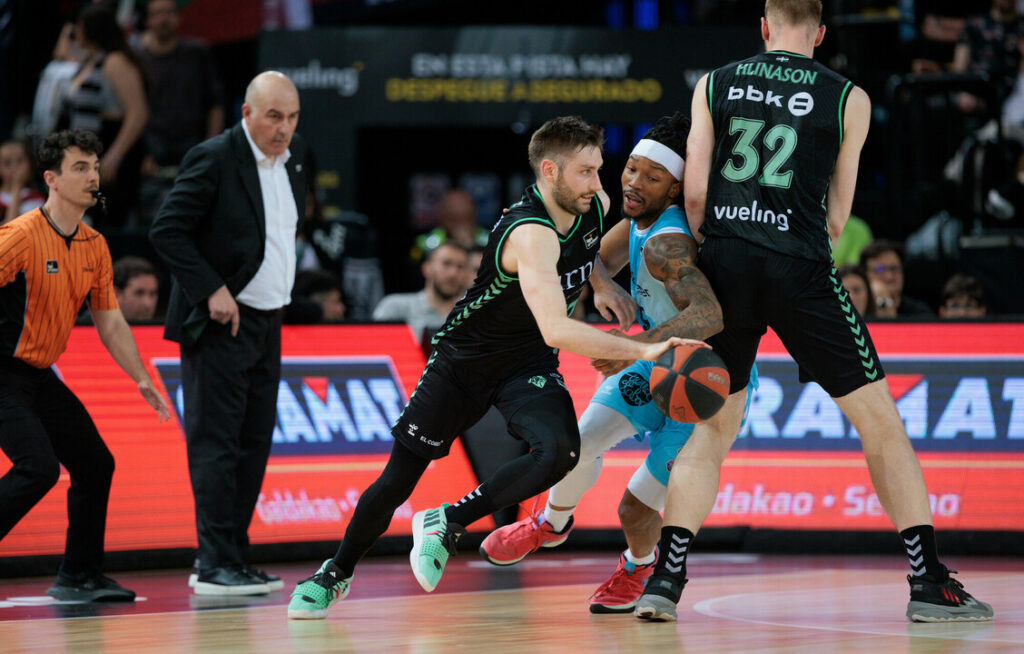 Comenzó el Bilbao Basket a buscar las cosquillas a los palentinos moviendo el árbol. El balón de extra pass a extra pass hasta encontrar el hueco por donde penetrar, logrando empatar el encuentro a 8 puntos consumidos poco más de cuatro minutos. Tanteo bajo más por los errores que por las acciones defensivas de ambos equipos.