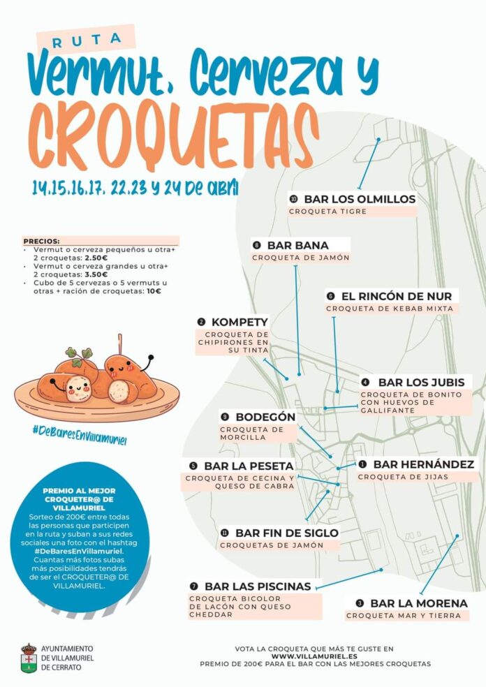 El Ayuntamiento de Villamuriel de Cerrato presenta la primera ruta del vermut, cerveza y croquetas en la que varios establecimientos hosteleros de la localidad participarán ofreciendo a los clientes una consumición de vermú, cerveza u otras bebidas con croquetas.