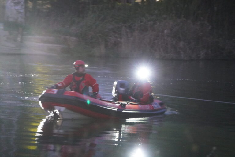 Hasta la llega del equipo subacuático de Policía Nacional, que ya está en la zona, los medios locales utilizan pértigas...