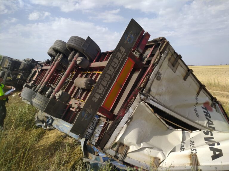 El camión acabó volcado en el fondo de un talud de varios metros de altura Dos personas han resultado heridas...