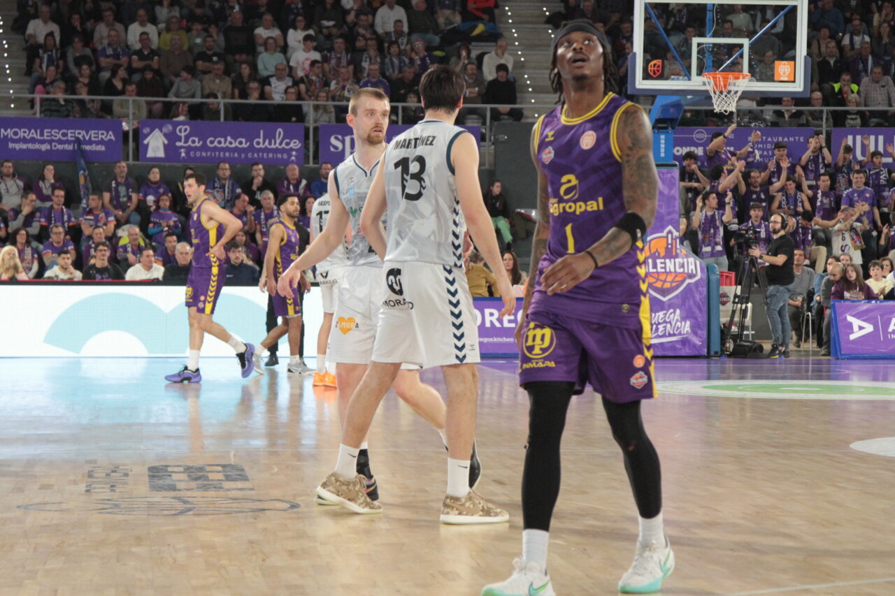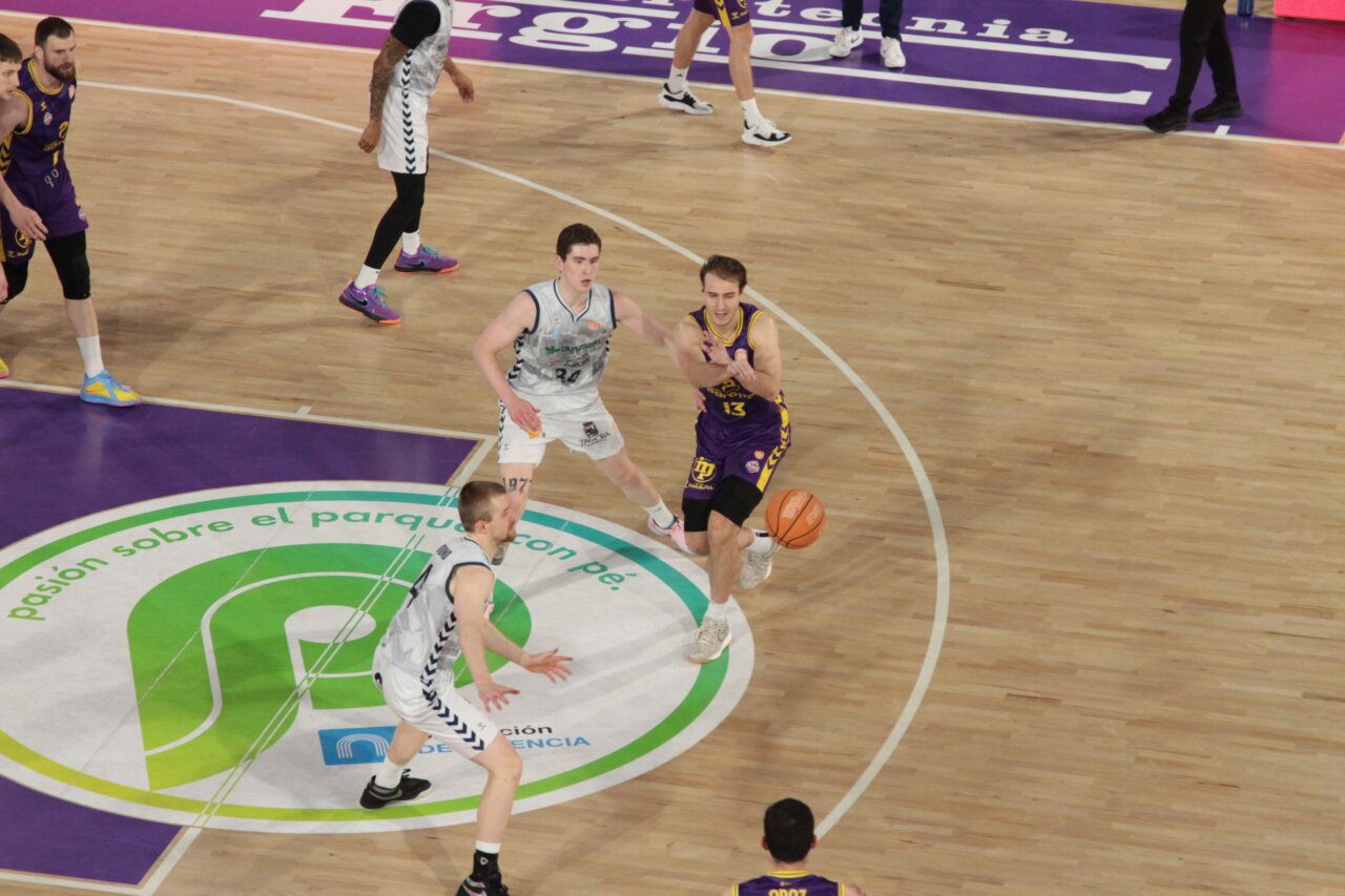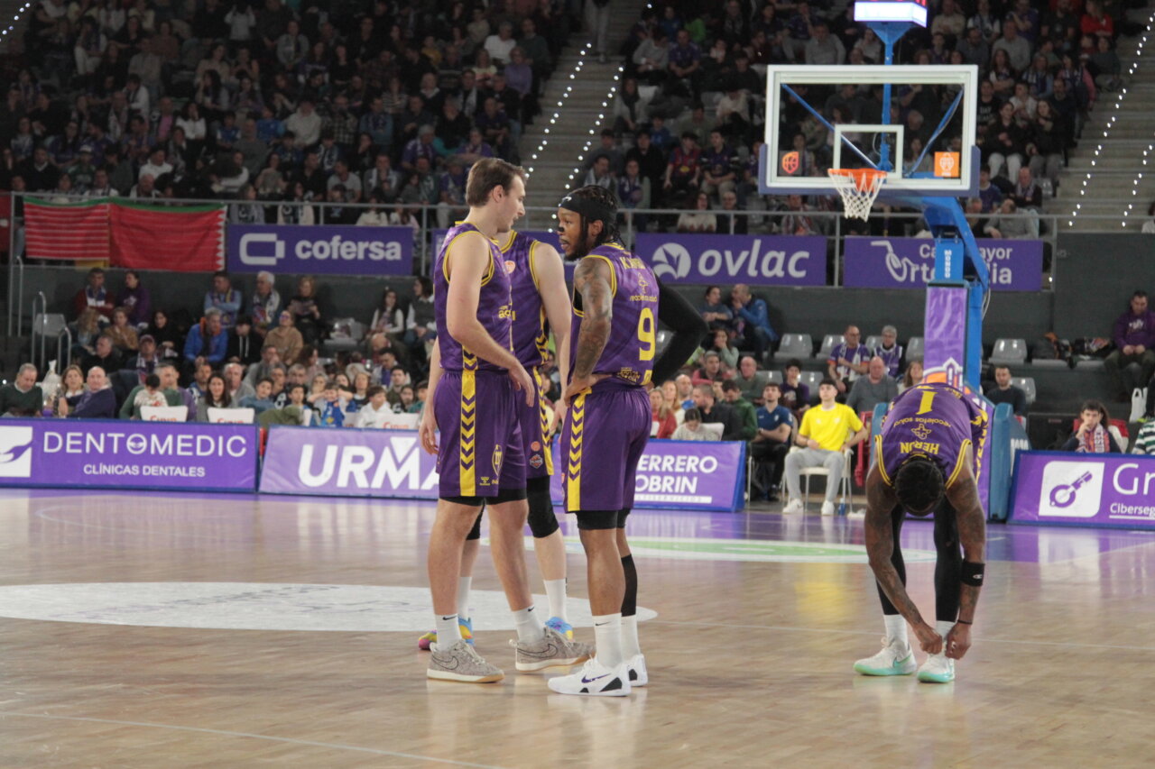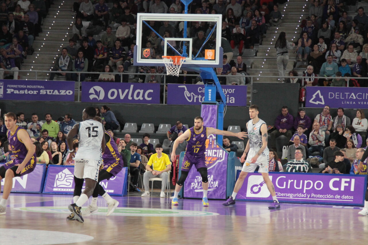 El cuadro morado, algo afectado por el parón, no pudo, hasta el último cuarto, despegarse del conjunto visitante, pegajoso y acertado en los tiros de tres (77-66)