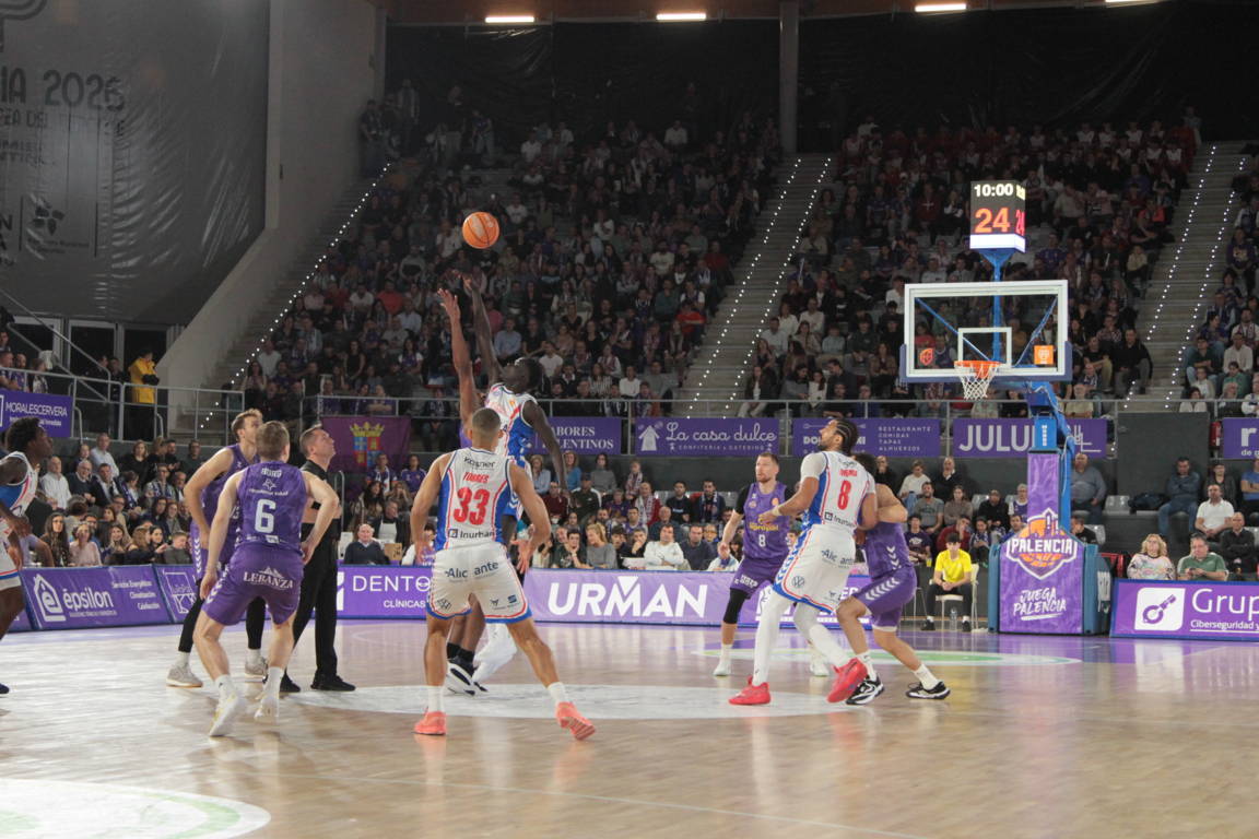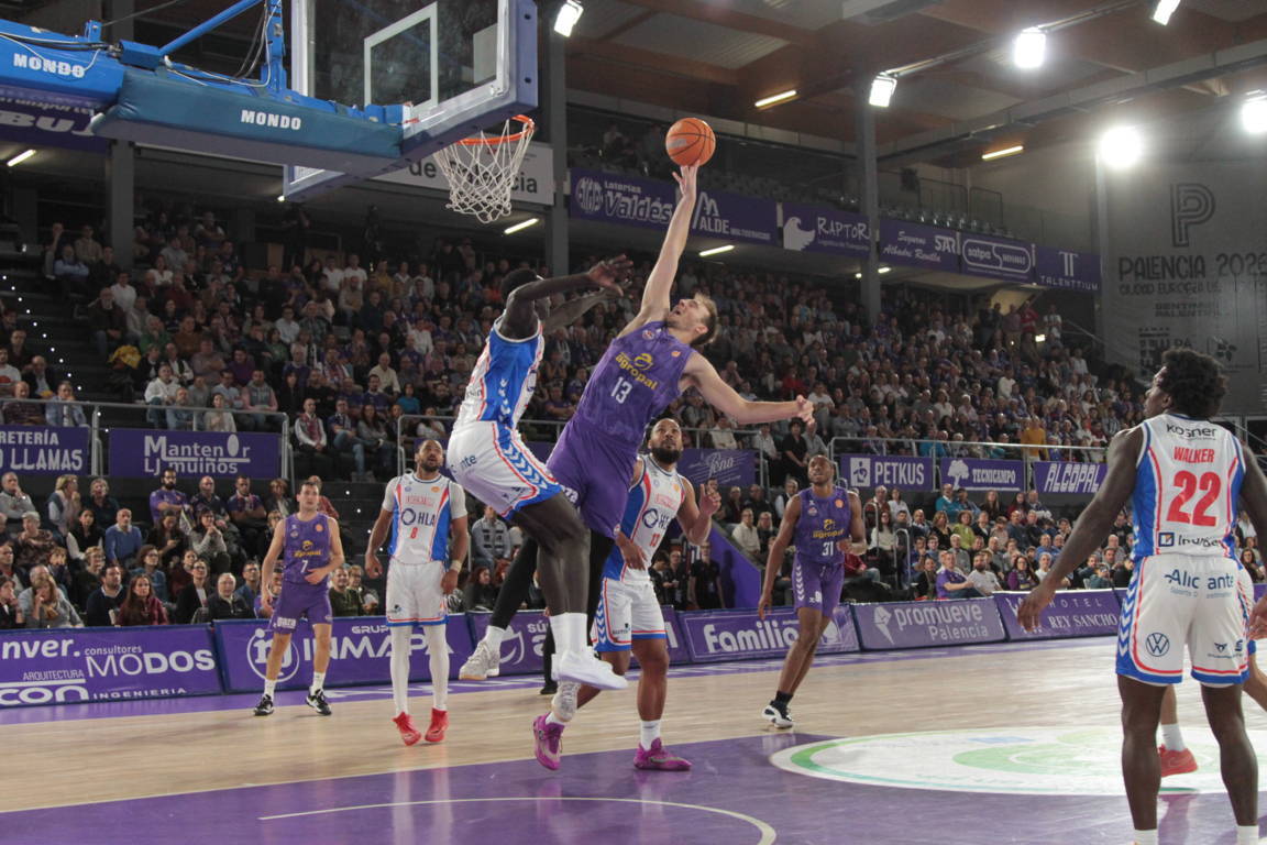 Arrancó el Súper Agropal Palencia robando la primera bola del Alicante y machacando Ugochukwu sobre la bocina. La segunda de los alicantinos también se la birló el Palencia para que el pívot morado encestara. Alicante dio la réplica desde el 6,75 de la mano de Geu, que no solo reboteaba.