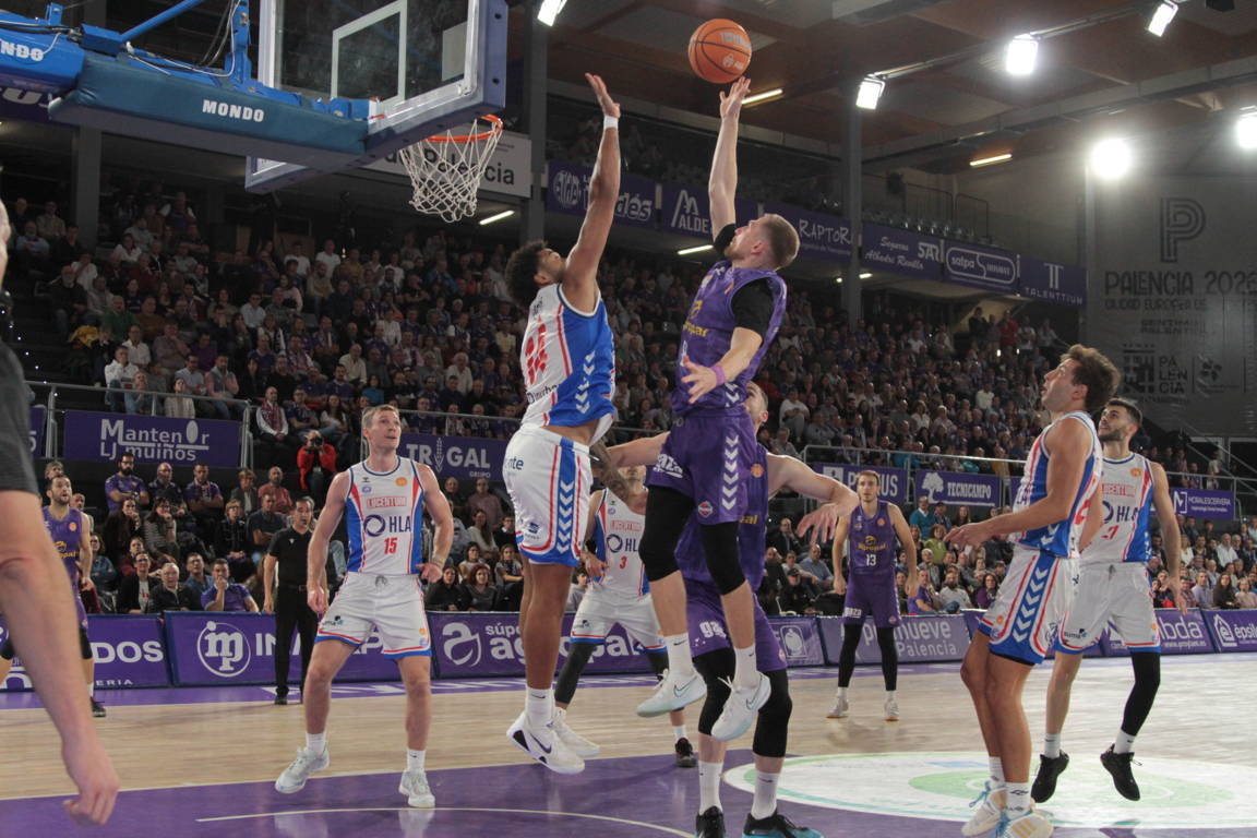 Durante unos minutos los aciertos defensivos impidieron al marcador moverse, pero Palencia, tirando de juego coral y defensas que sofocaban a los alicantinos, volvió a abrir hueco. 33-21 consumido la mitad del segundo cuarto. Larsen, encimado (y a veces agarrado según los árbitros) por Armus, por ahora, solo sumaba 2 puntos con más de 10 minutos en cancha.