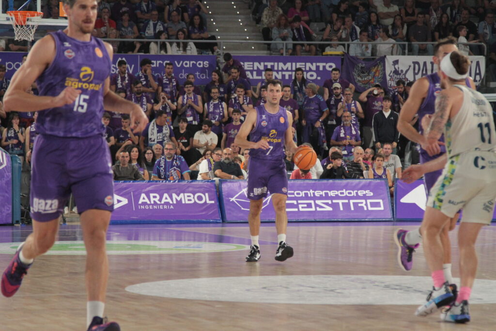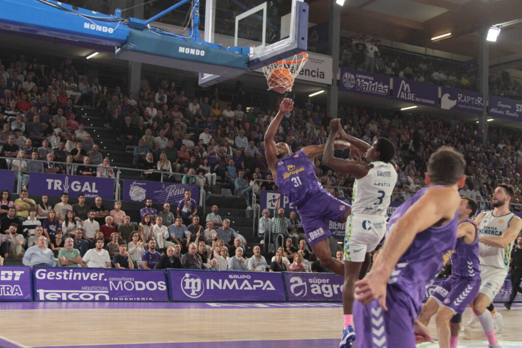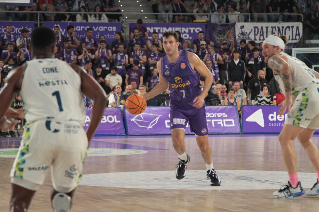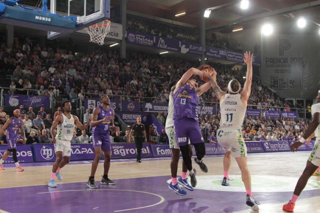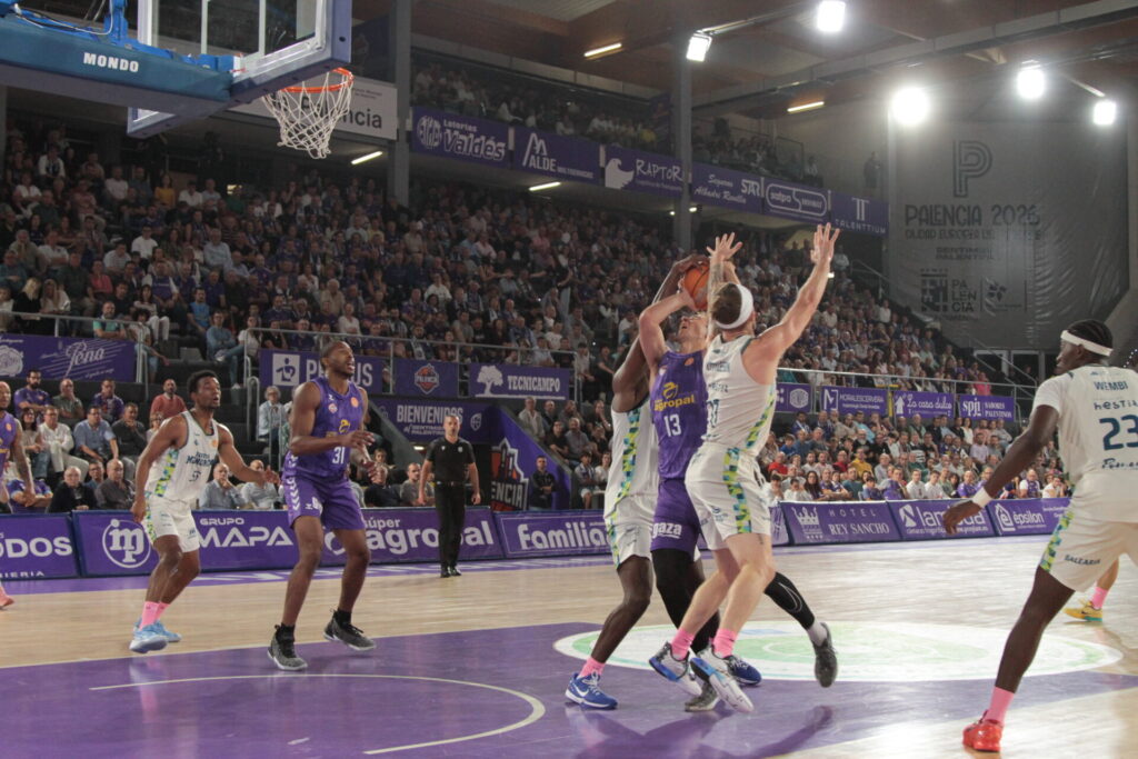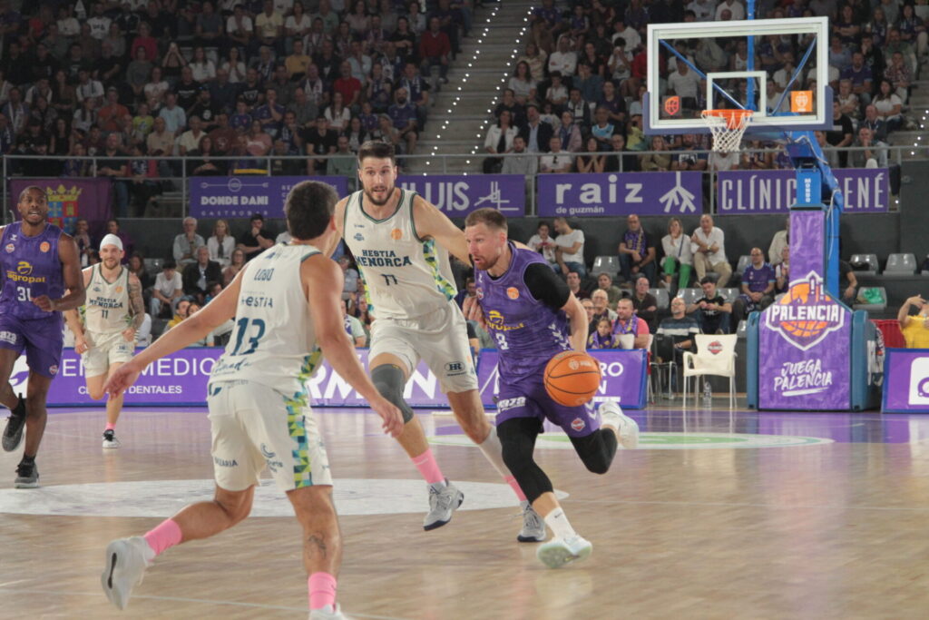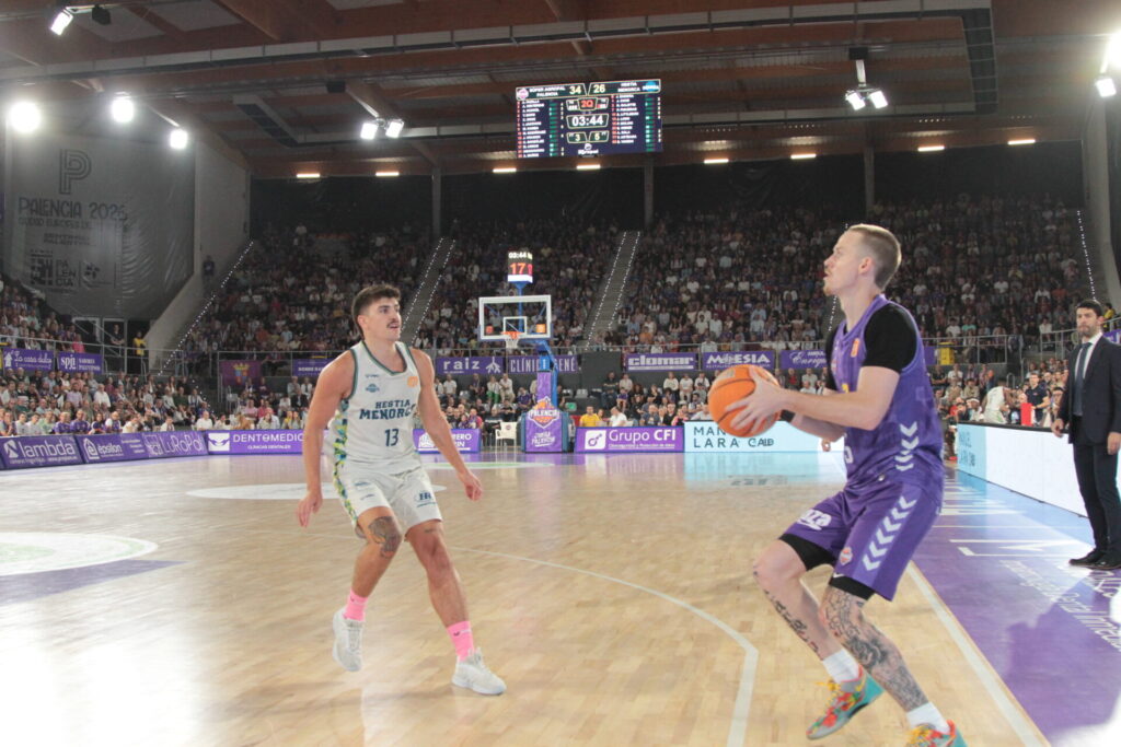 Comenzó también el recital de viento de las gradas locales al mostrar su desacuerdo con dos faltas concedidas al Hestia Menorca que los acercaron en el electrónico. Una mala combinación en el ataque morado propició que los baleares se volvieran a poner por encima, pero Vrankic en una jugada de perseverancia bajo el aro logró sobreponer al Súper Agropal Palencia. En todo caso, el encuentro estaba en un pañuelo y sin desplegar el cuadro local su potencial de juego. Tampoco de tiro, con apneas 13 lanzamientos de campo, y la mitad fueron fallos.