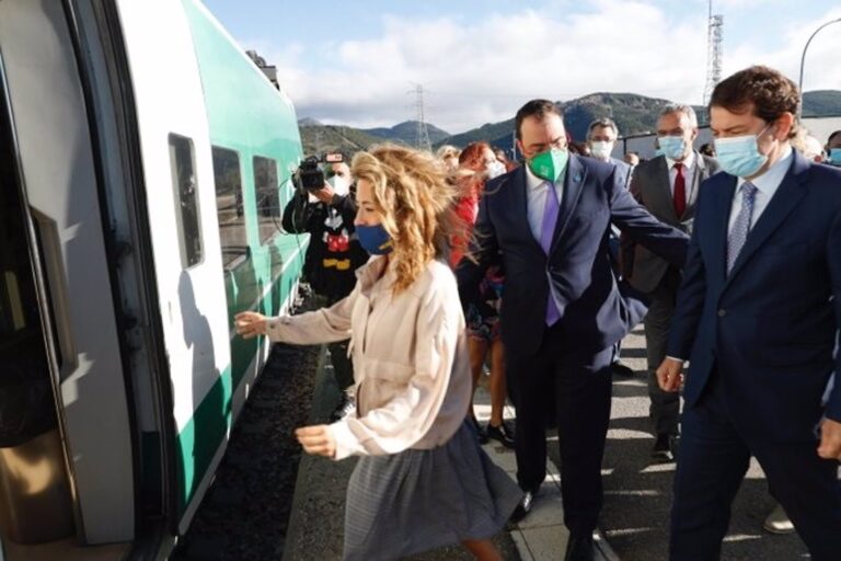 El primer viaje en pruebas con pasajeros por la variante ferroviaria de Pajares, que conectará León y Asturias, se ha...