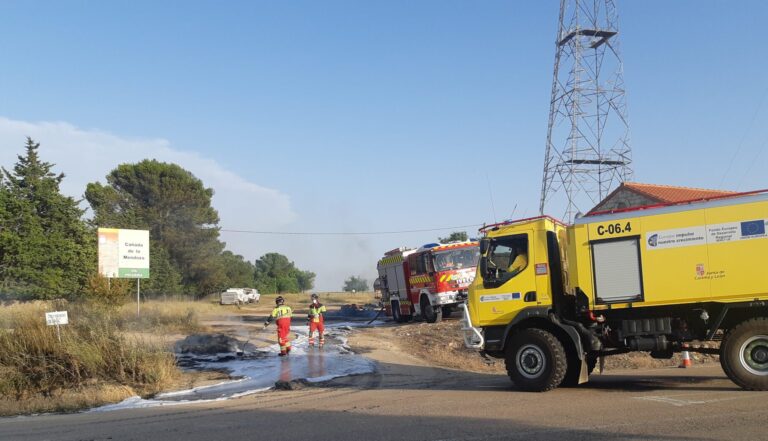 El incendio de un vehículo en la carretera de Ampudia provocó unas llamas que obligaron a intervenir a varias dotaciones...