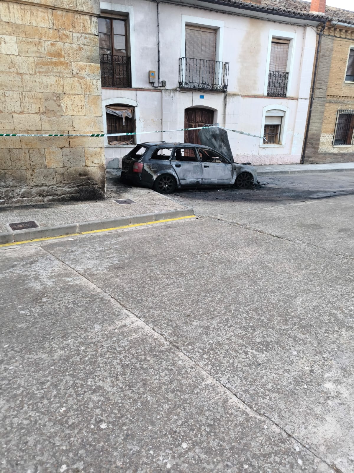 El incendio calcinó el vehículo afectando también a la terraza del bar Arrabal y llegando a la planta baja del...