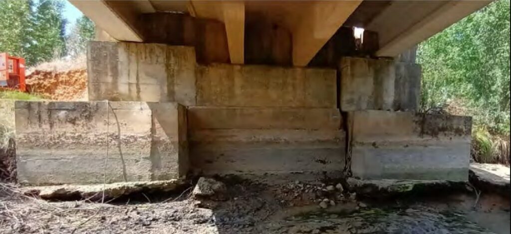 El puente, cortado desde hace meses, presenta el descalzado de uno de sus estribos, a causa de las corrientes, y...