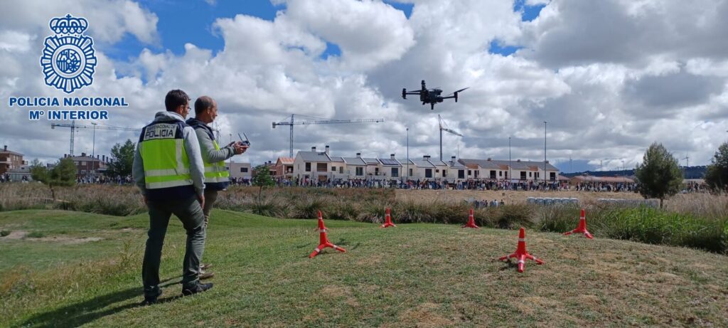 Dron de vigilancia en la fiesta universitaria de la ITA, que se celebra en el Parque Ribera Sur de Palencia. / Brágimo (ICAL)