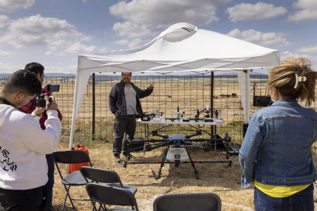 Emplea estos aparatos para el cuidado de los pastos en relación al control de posibles plagas y del alimento que ingieren los animales, con el fin de identificar “si hay algo que está sentando mal al ganado”.