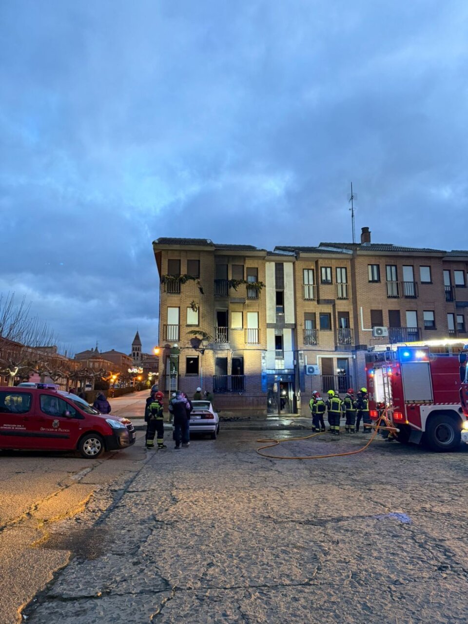 El suceso fue comunicado a través de varias llamadas recibidas desde la Avenida Berruguete, que alertaban de la presencia de llamas saliendo de un piso de un bloque de viviendas situado frente a la estación de tren. Tras el aviso, se dio traslado de la incidencia a la Guardia Civil y a los Bomberos de la Diputación de Palencia, que se desplazaron hasta el lugar para intervenir en la extinción del incendio.