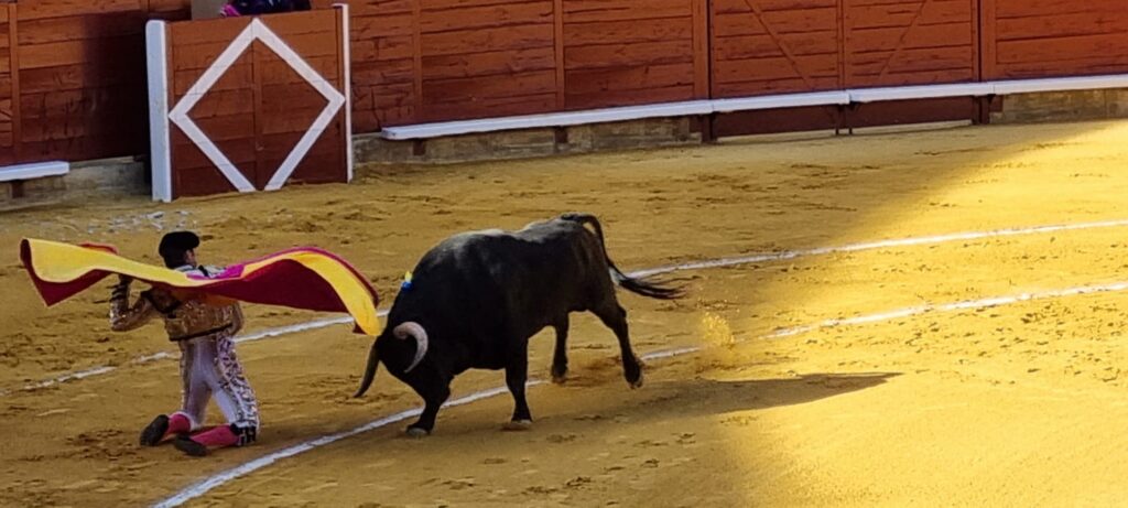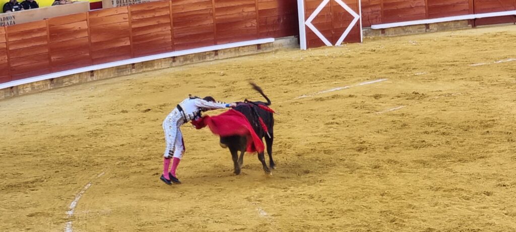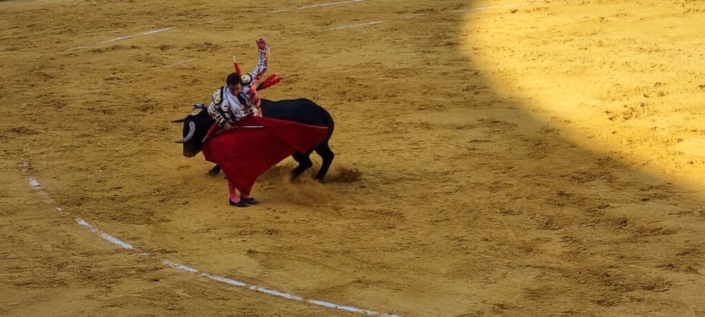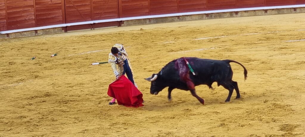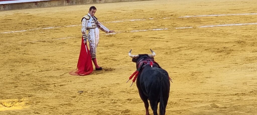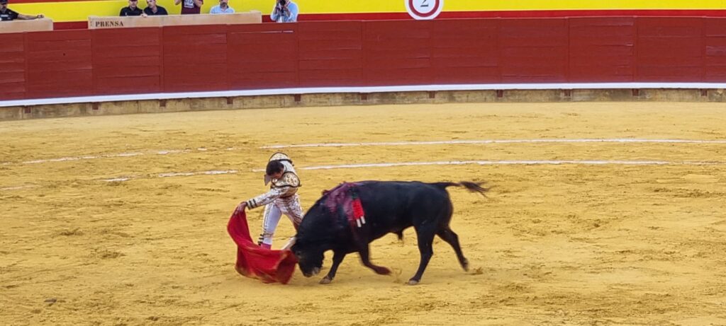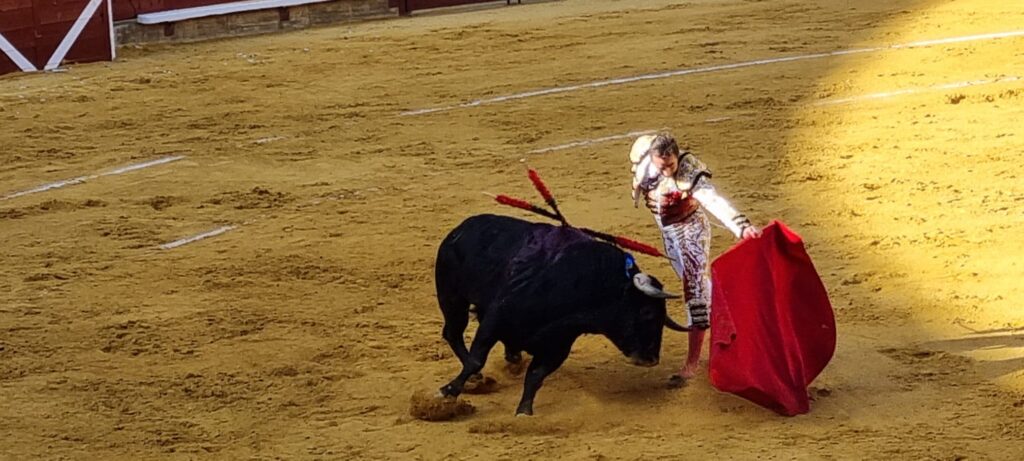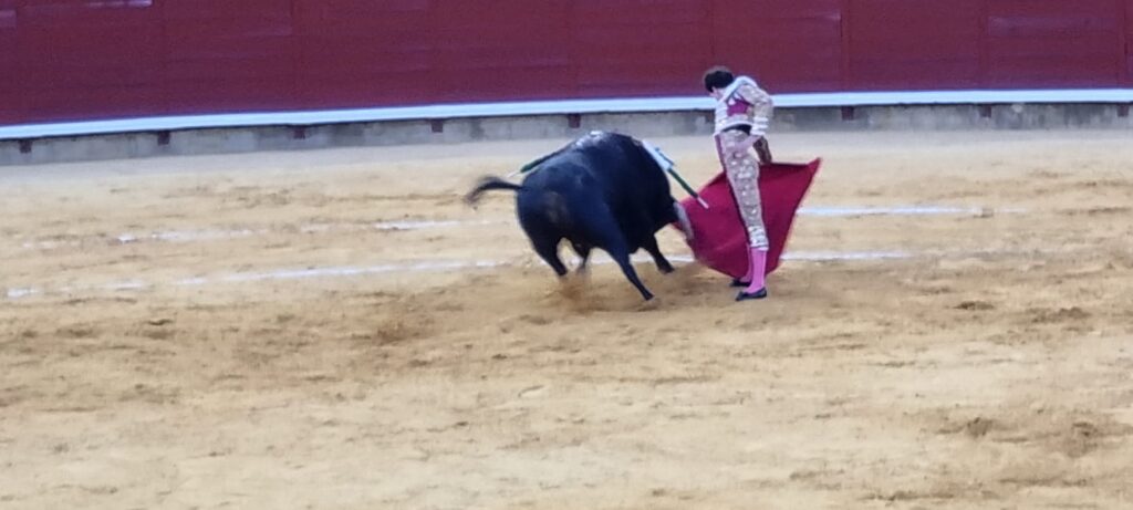 ‘Chiquito’ siguió el mismo patrón que el de sus hermanos, perdiendo las manos desde el inicio. Marcó el picador al morlaco. Siguieron quites por chicuelinas y un alarde, cosas de Ginés Marín, siempre cumplidor. La cosa se torció a partir del terrible tercio de banderillas por parte de la cuadrilla de Marín, a un toro que le acabó de rematar una voltereta. Y así, todo parecía un “no puedor, no puedor” del toro que Ginés no pudo levantar en la faena de su primero. Cambió a la izquierda tras un par de tandas, y evitó el peligro tras un par de coladas. Eligió suerte contraria, casi siempre mata bien a la primera el extremeño, lo que le valió la oreja.