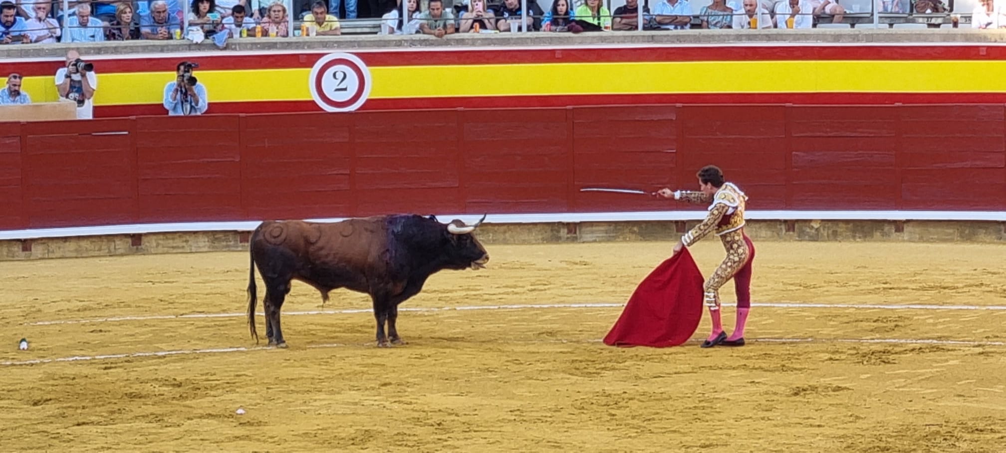 ‘Chiquito’ siguió el mismo patrón que el de sus hermanos, perdiendo las manos desde el inicio. Marcó el picador al morlaco. Siguieron quites por chicuelinas y un alarde, cosas de Ginés Marín, siempre cumplidor. La cosa se torció a partir del terrible tercio de banderillas por parte de la cuadrilla de Marín, a un toro que le acabó de rematar una voltereta. Y así, todo parecía un “no puedor, no puedor” del toro que Ginés no pudo levantar en la faena de su primero. Cambió a la izquierda tras un par de tandas, y evitó el peligro tras un par de coladas. Eligió suerte contraria, casi siempre mata bien a la primera el extremeño, lo que le valió la oreja.