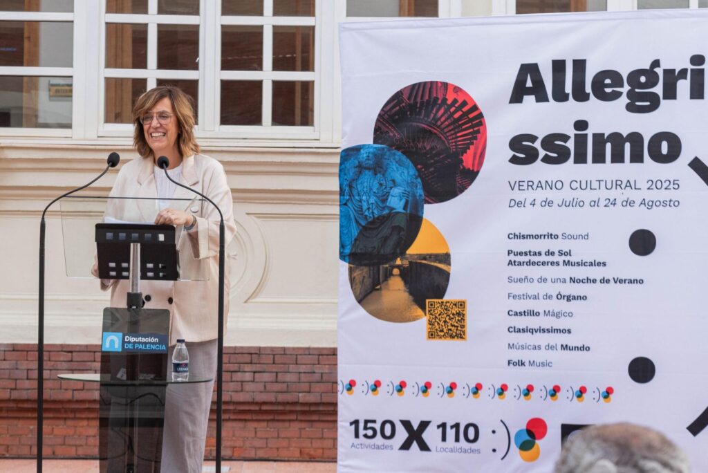 El verano cada año es Allegríssimo en más localidades. Hasta a 110 pueblos llegará este año la programación cultural estival que promueve la Diputación de Palencia y que hoy ha sido presentada en uno de los escenarios en los que se desarrollarán actuaciones: el Patio del Palacio Provincial.