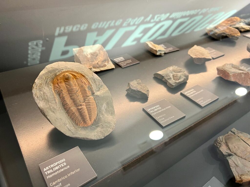 Así, en el Eón Fanerozoico, que es donde se ubica la existencia de la vida en la Tierra, todo comienza con el Paleozoico, con la explosión de la vida y los primeros artrópodos, que pueden atestiguarse a la perfección en los fósiles presentes en ‘Fossilium’. Merece la pena comprobar cómo era un trilobite, habitaba en los fondos marinos y se alimentaba de microorganismos. Era capaz de plegar su caparazón completamente como medida de defensa.
