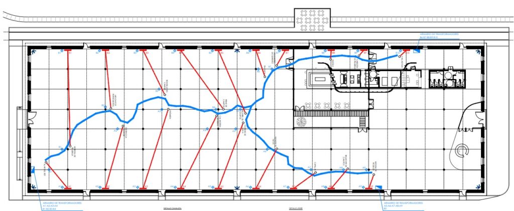 En el suelo también se plantea estampar el recorrido del Canal de Castilla mediante luces y un sistema de barras LED en color azul, “que reproducirá el plano en forma de “Y” del Canal de Castilla, desde Alar del Rey, hasta sus dos destinos finales”.